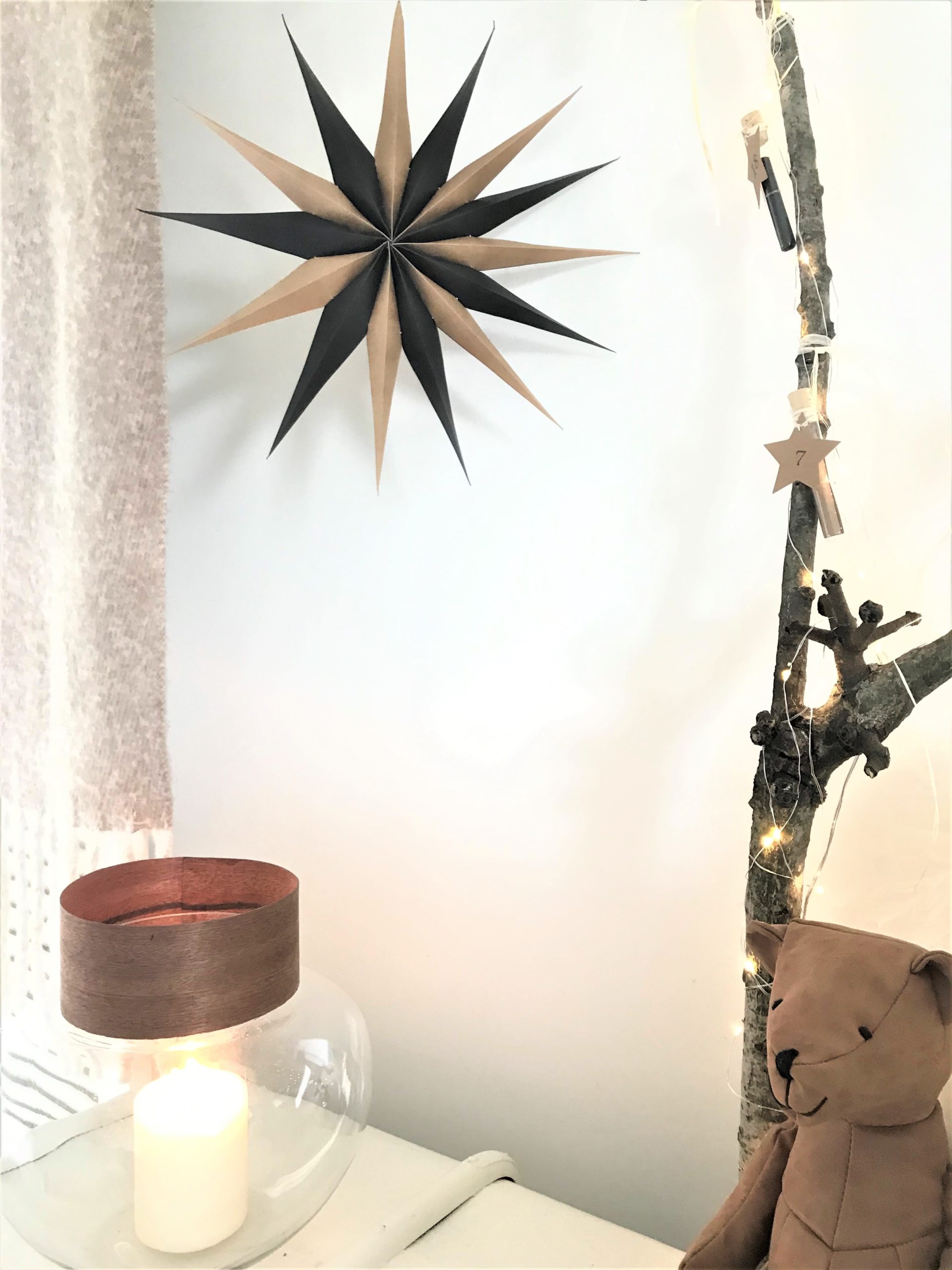 Wer mag kann aus dem Tonpapier noch ein paar Sterne für die Deko basteln.
