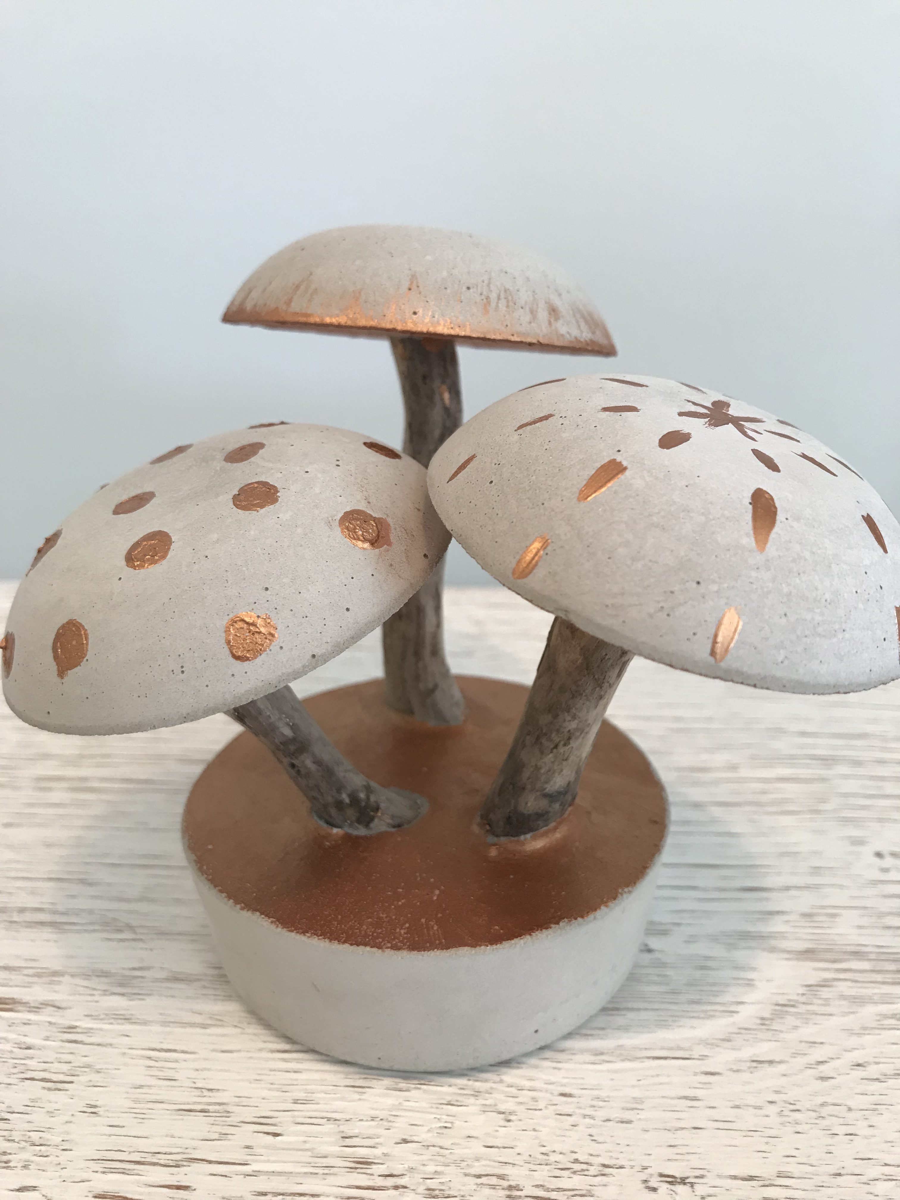 Es gibt natürlich auch noch ganz andere Methoden Beton Pilze zu gestalten. Mir gefällt die Mischung aus Beton mit Holzästen besonders gut.
