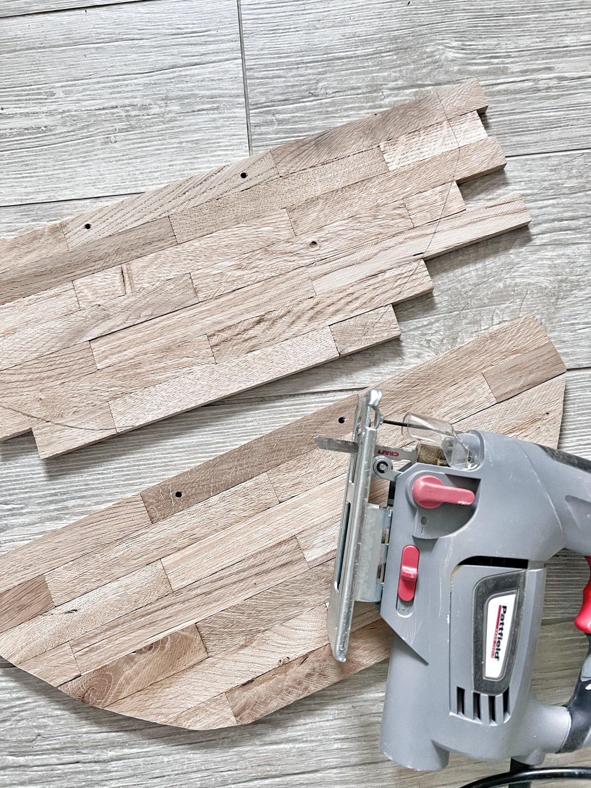 - Übertragt den Umriss der Vorlage auf die fest verleimten Platten und sägt die beiden Seitenplatten aus.