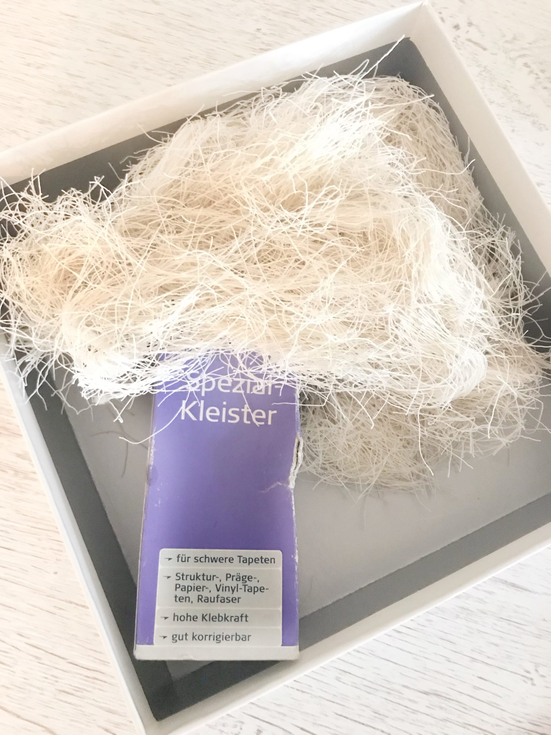 - Während die Baumrinde trocknet, könnt ihr schon das Osternest basteln. Das Nest muss nämlich auch gut durchtrocknen. Dafür legt ihr etwas Frischhaltefolie über eine Schale oder eine Plastikhalbkugel. Dann mischt ihr das Heu oder Scharpie mit angesetztem Tapetenkleister. Das klegbrige Gemisch verteilt ihr nun auf der Frischhaltefolie und modelliert eine Halbkugel aus, welche dann auch 1-2 Tage trocknen muss.