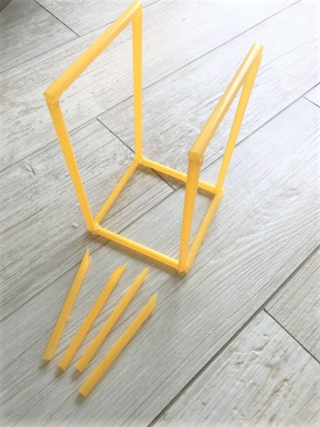 Wenn ihr diese Methode wählt, müssen die 4 Bodenröhrchen gleich lang sein. Außerdem seht ihr, dass ich im Dachgiebel 2 zusätzliche Querstreben eingebaut habe. Ihr müsst also eure Strohhalme wie folgt zuschneiden: