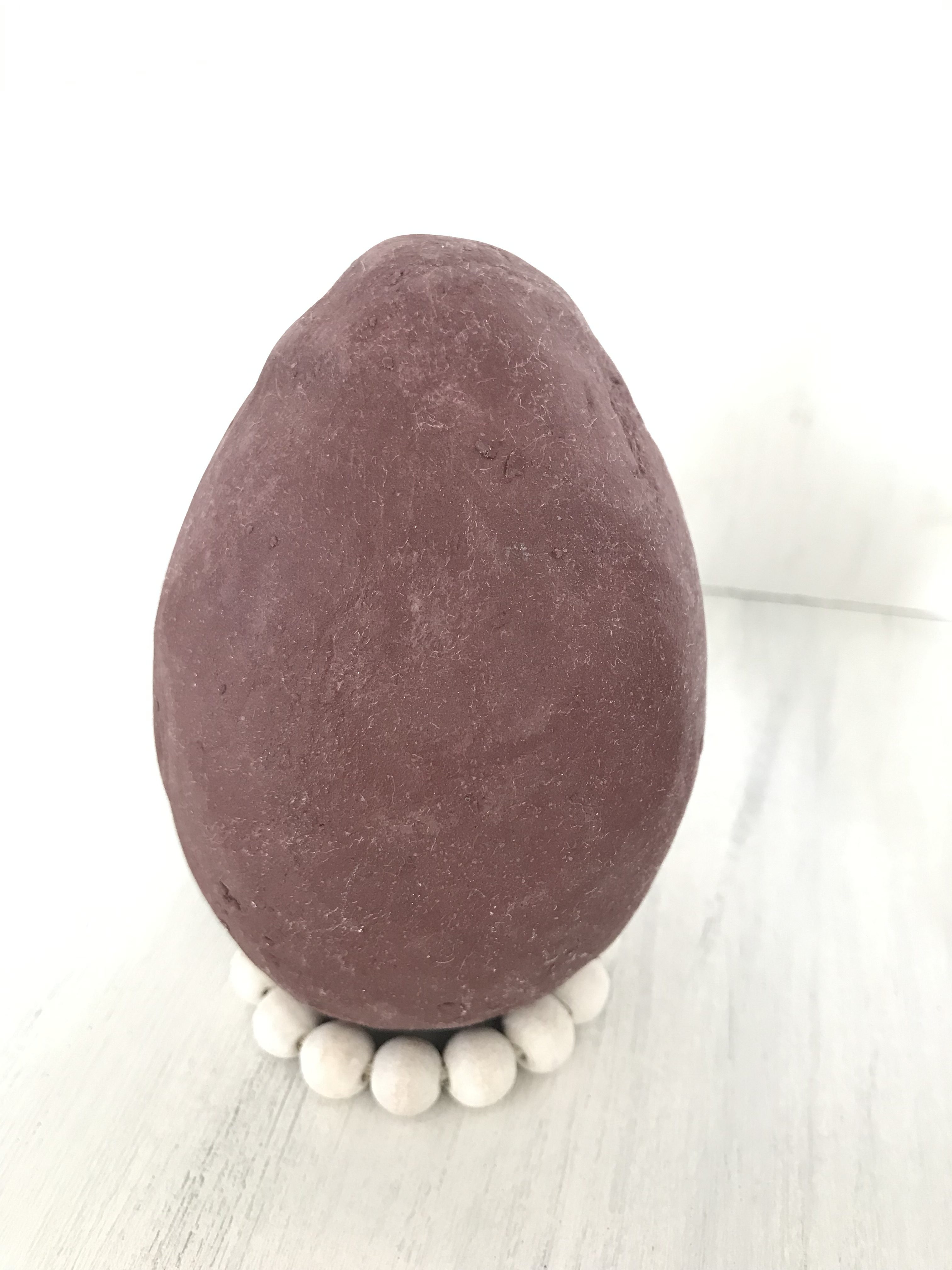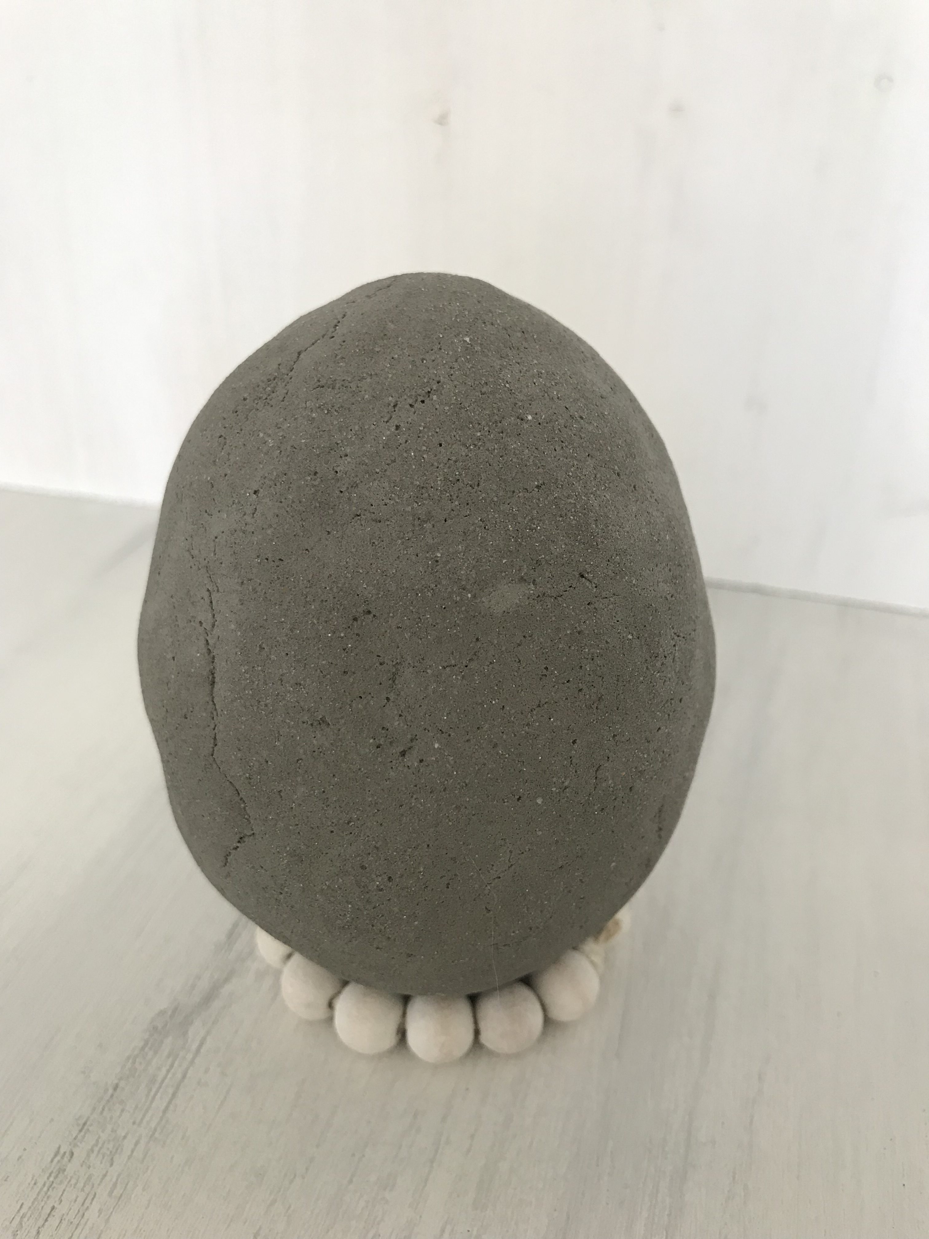 - Den flachen Knetbeton auf das Plastikei aufbringen und die Form mir den Händen ausmodellieren, bis das Ei die gewünschte Form hat.
