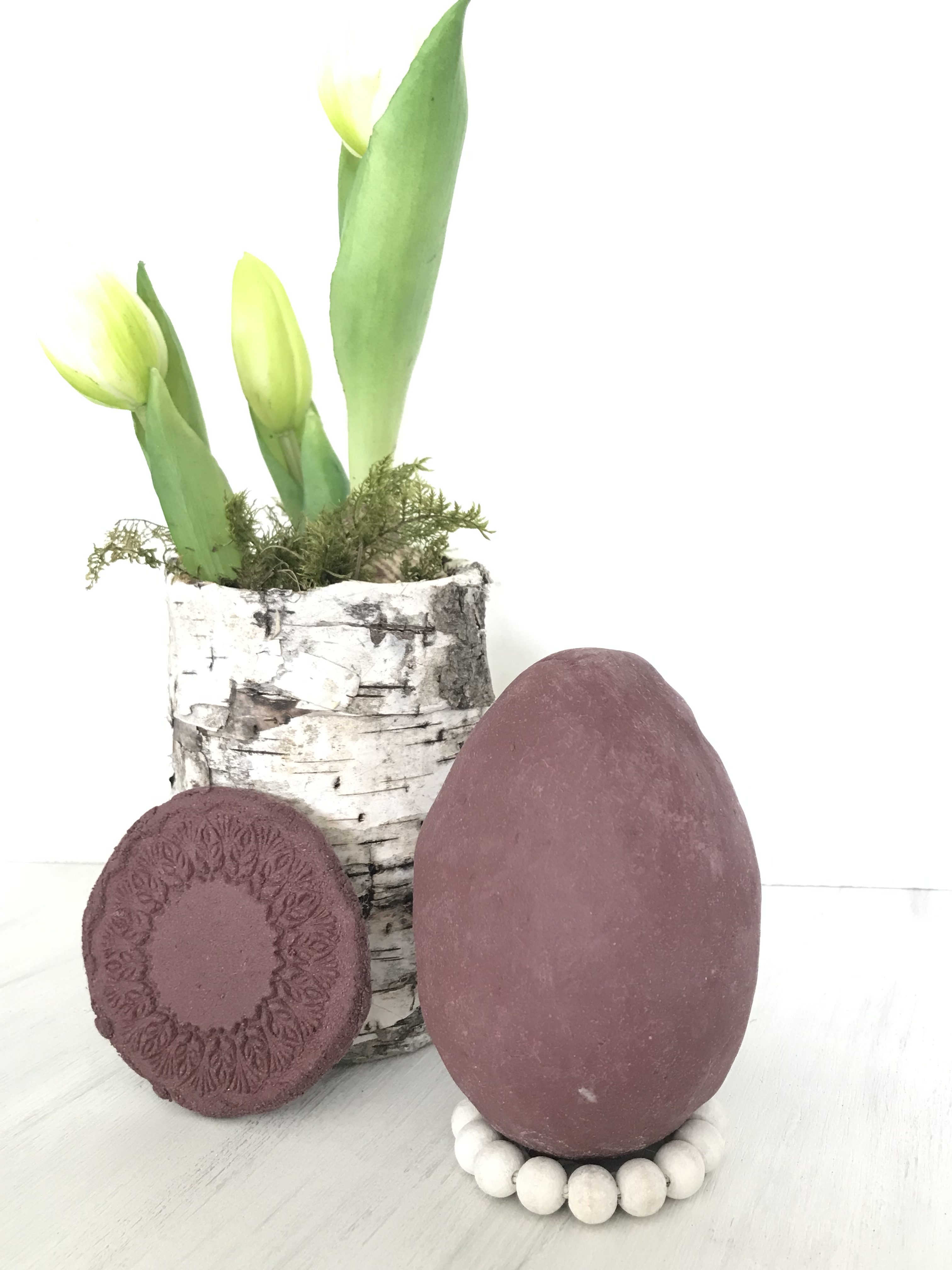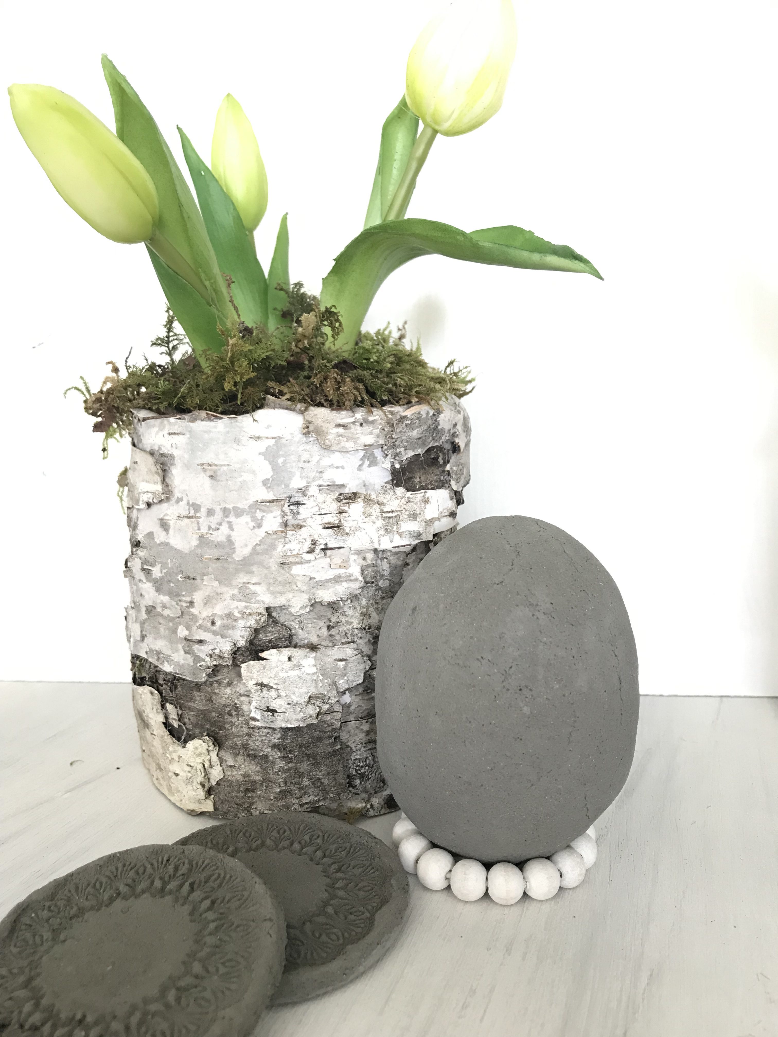 Mich hat dann natürlich interessiert, ob ein Knetbeton vom Hersteller besser ist als meine vogelwilde Eigenkreation. Ich habe also beide Varianten parallel ausprobiert. Dabei habe ich mit beiden Betonvarianten jeweils Untersetzer und Ostereier gestaltet.
