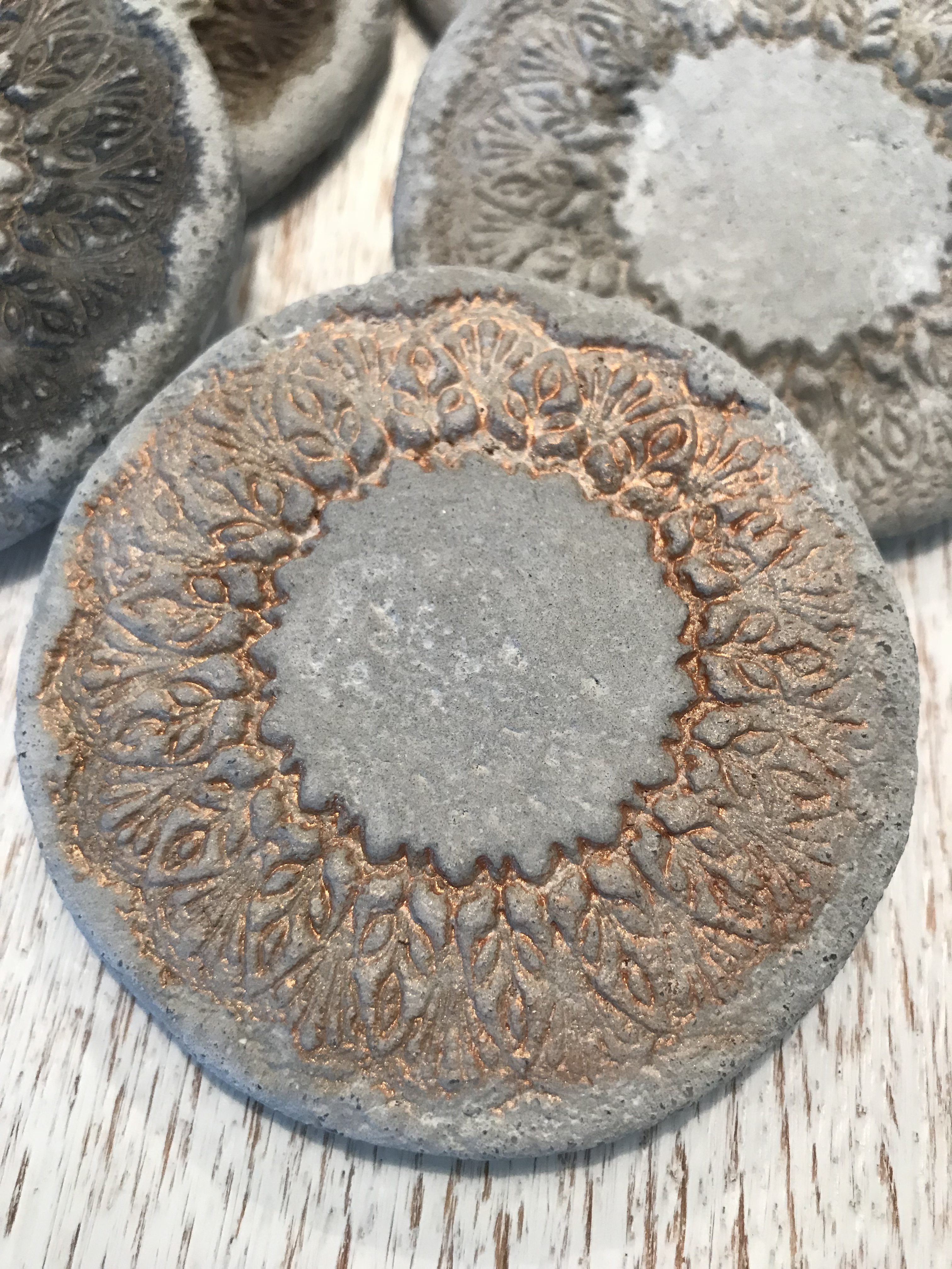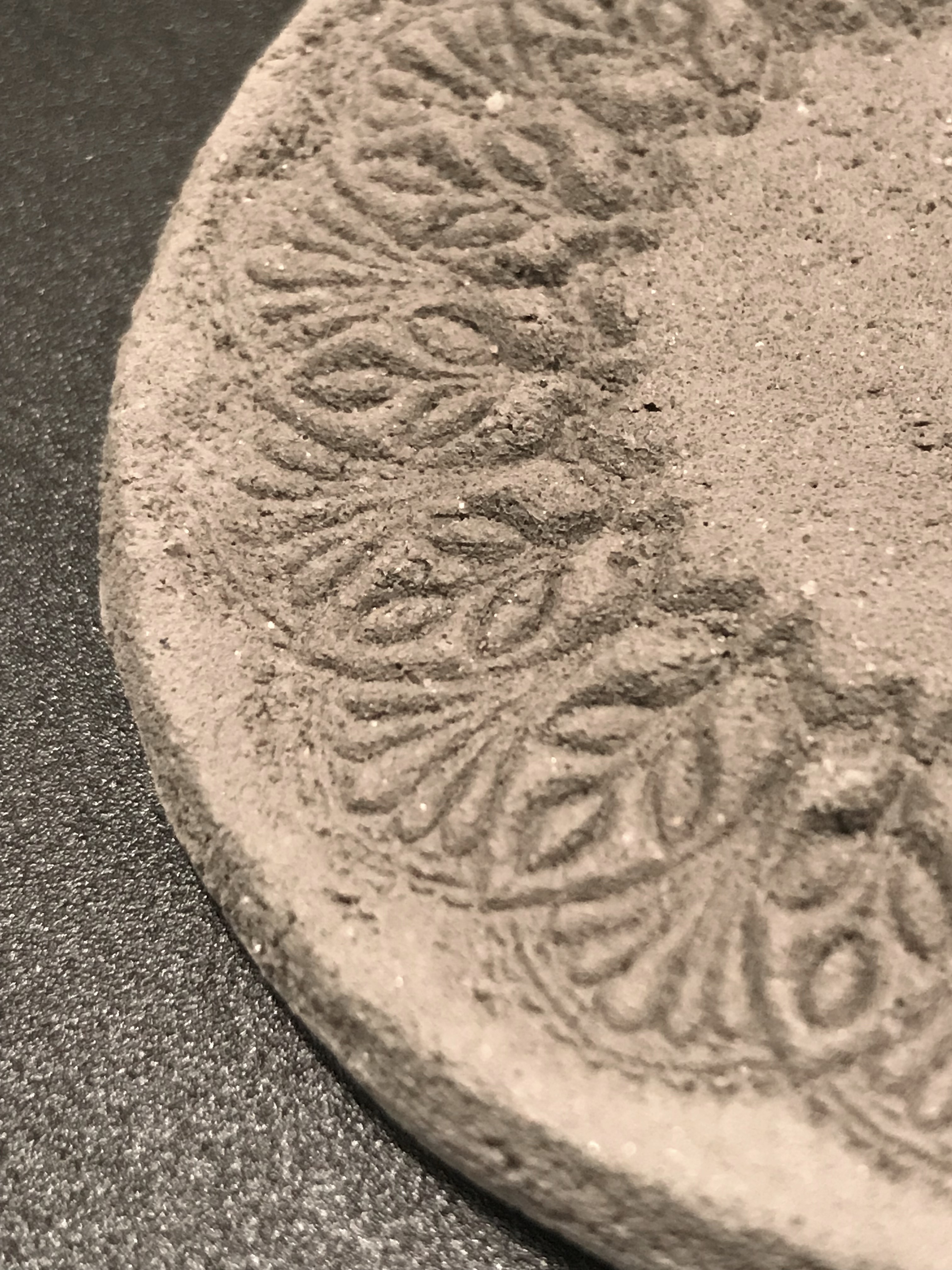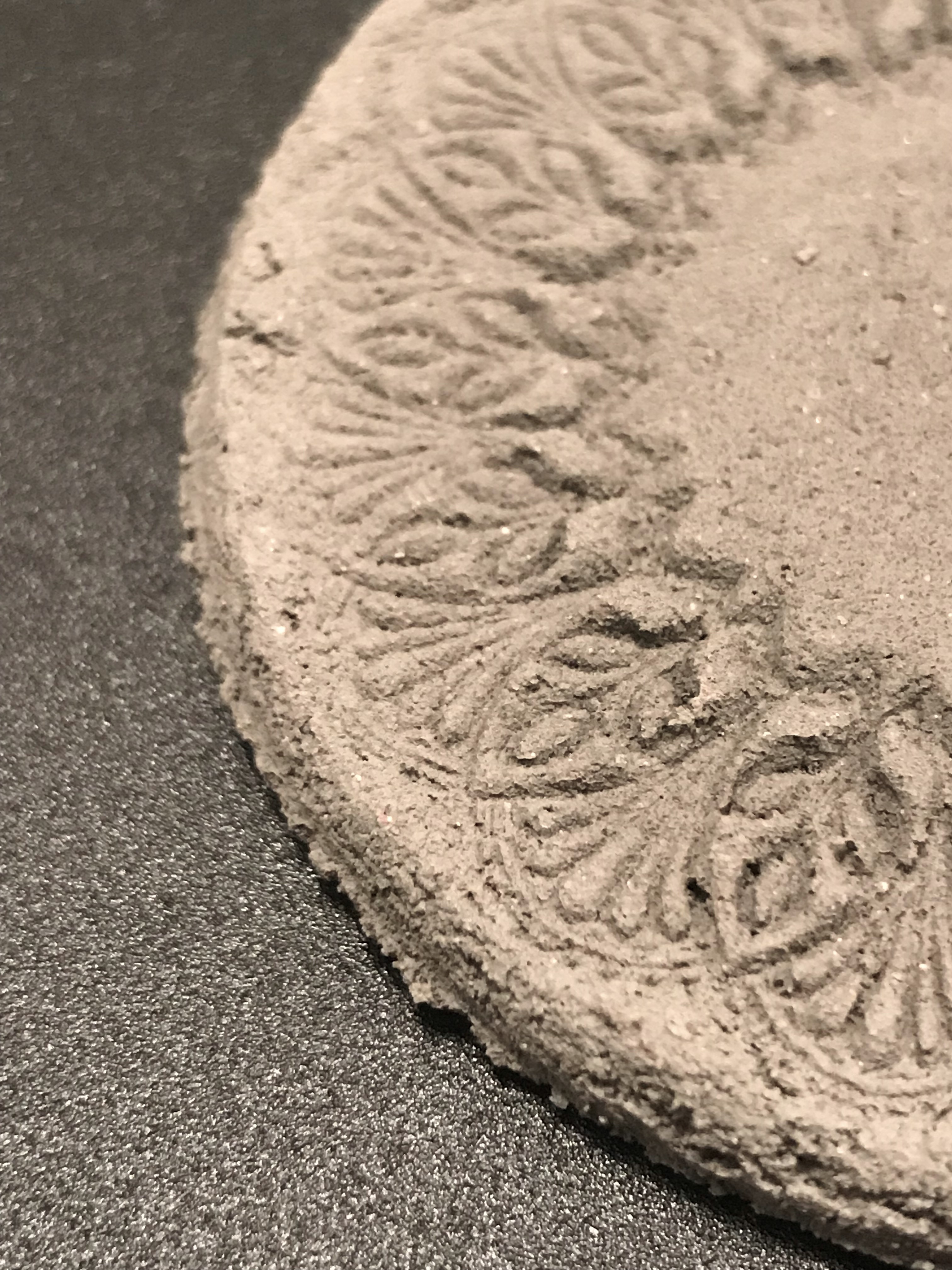 - Mit dem Stempel das Mandamuster in den Beton drücken.