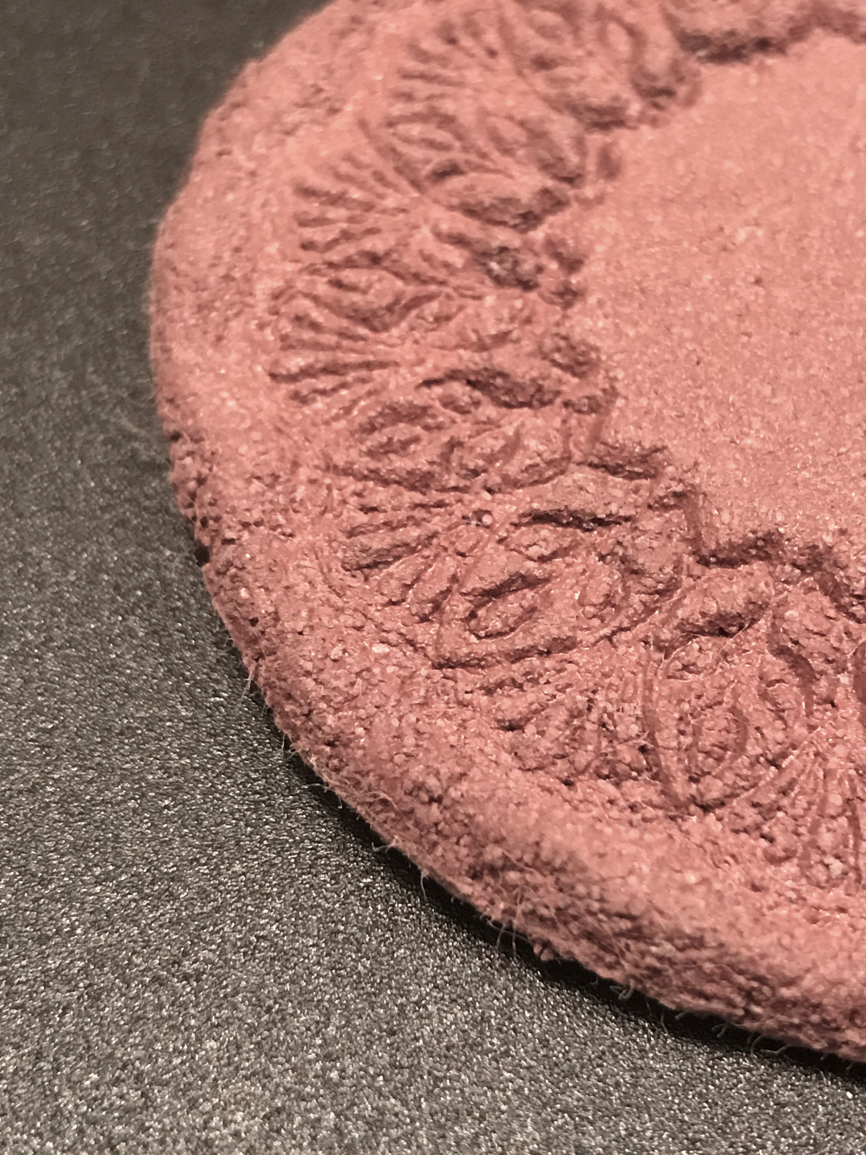 Der Knetbeton vom Hersteller enthält wohl sowas wie Glaswolle. Das scheint bei allen Herstellern gerne in den Knetbetonmischungen verwendet zu werden. Die Zugabe von Glaswolle war auch in einigen DIY-Rezepturen erwähnt, die ich im Internet gefunden hatte. Beim Ausstanzen sieht man die kleinen Härchen dann an der Schnittkante. Wenn man nach dem Aushärten mit Sandpapier darüber schmirgelt, verschwinden diese aber.