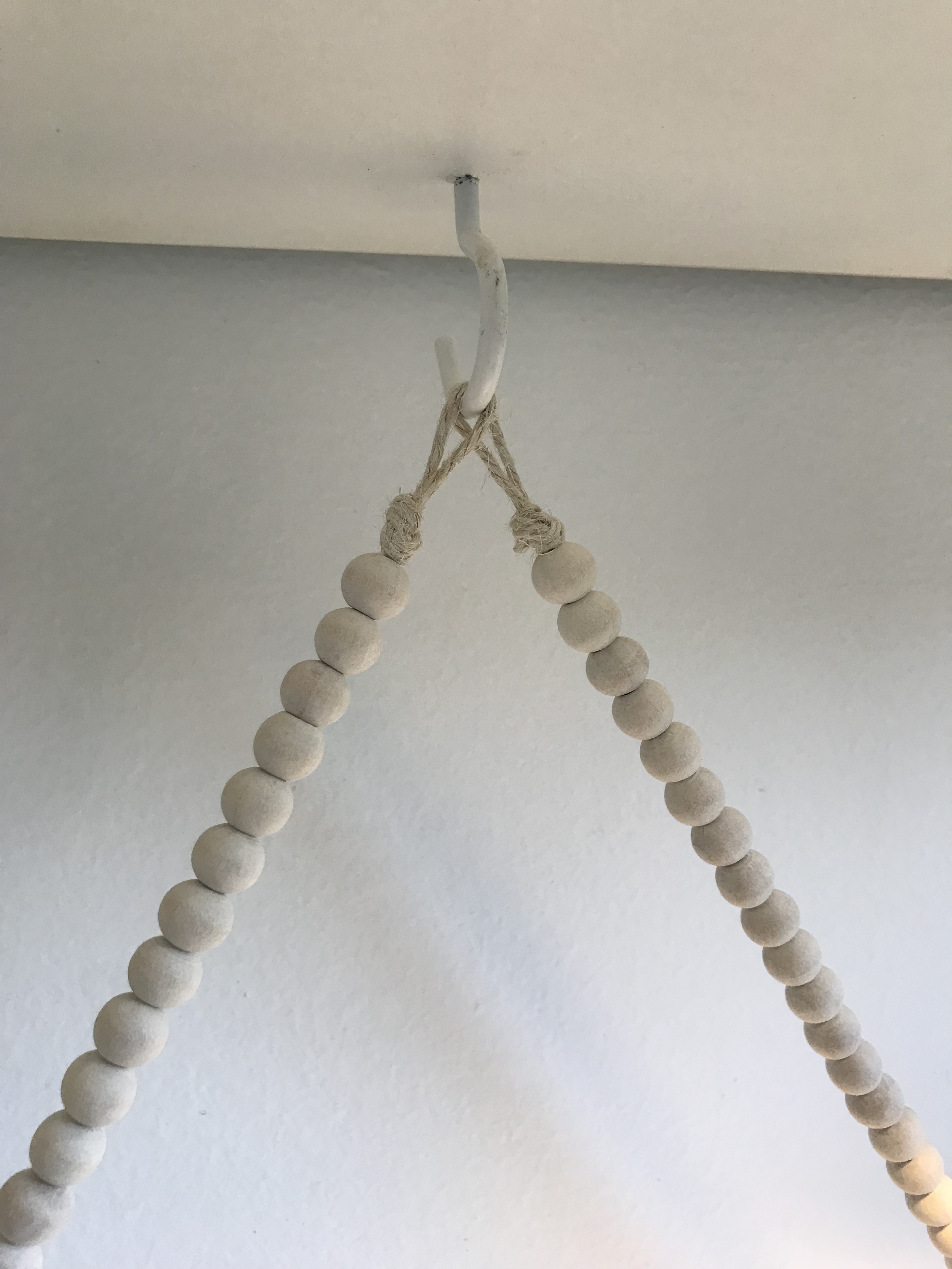 Ich habe meine Kugeln und die Paketschnur mit Kreidefarbe ein bisschen geweißelt damit es sich besser bei mir einfügt. Ihr könnt natürlich die Holzkugeln auch kunterbunt anmalen.