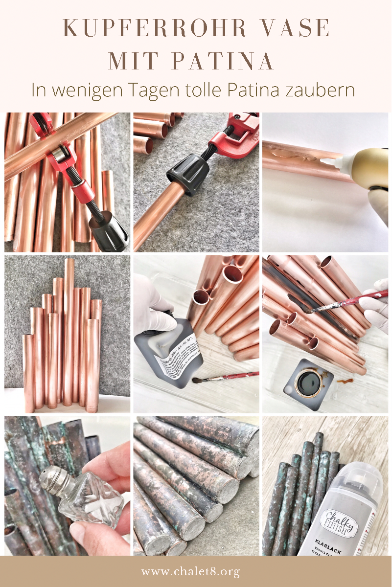 Kupferrohr Vase mit toller Patina in nur wenigen Tagen selbst machen. Auch für frische Blumen und als Kerzenhalter geeignet.