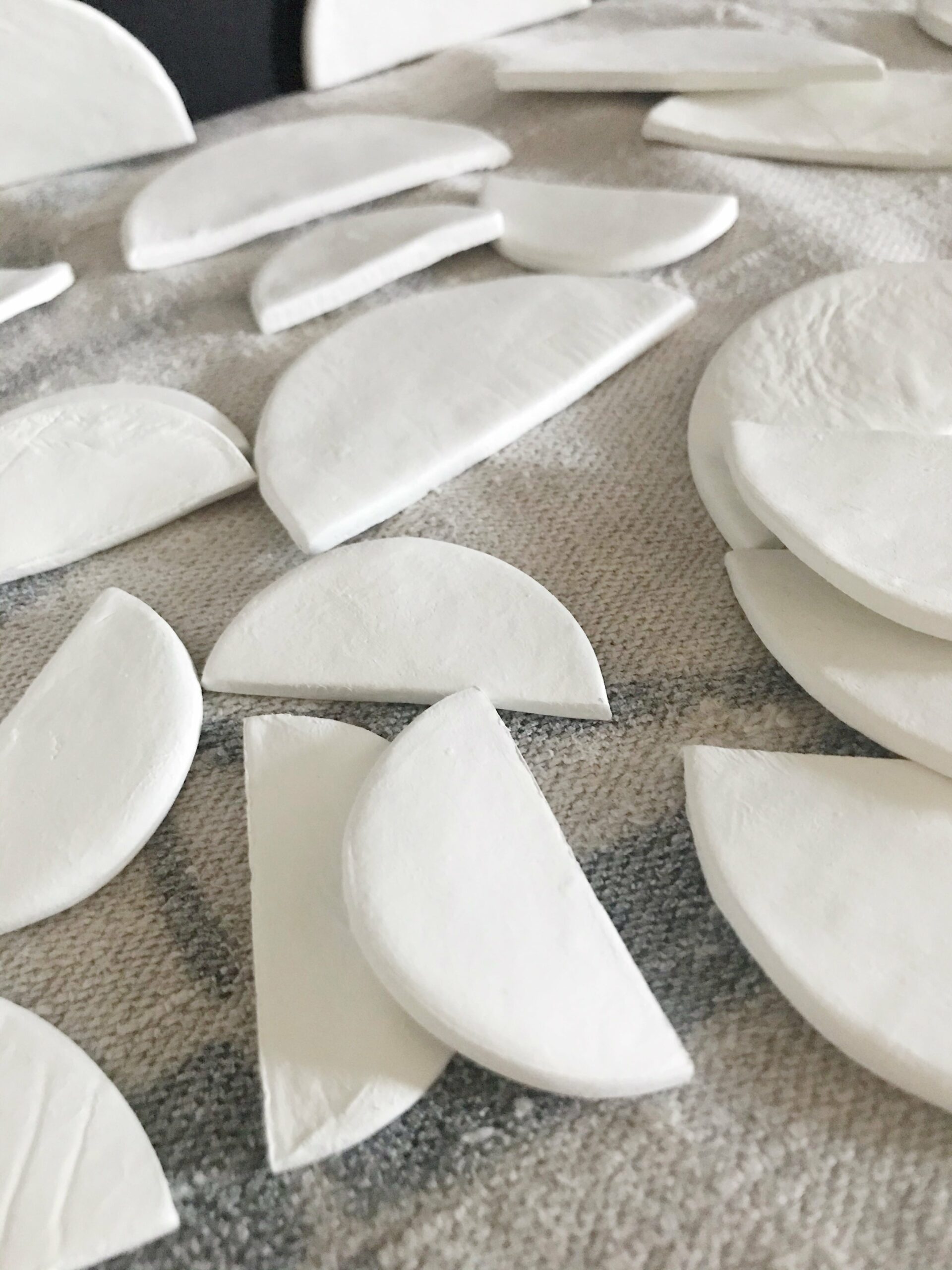 - Damit sich die Halbkreise beim Trocknen nicht wölben, stellt sie am besten aufrecht (auf der Schnittkante stehend) an eine glatte Wand gelehnt auf. Nach 4-6 Stunden solltet ihr sie auch einmal umdrehen, damit die Rückseite auch genug Luft bekommt.