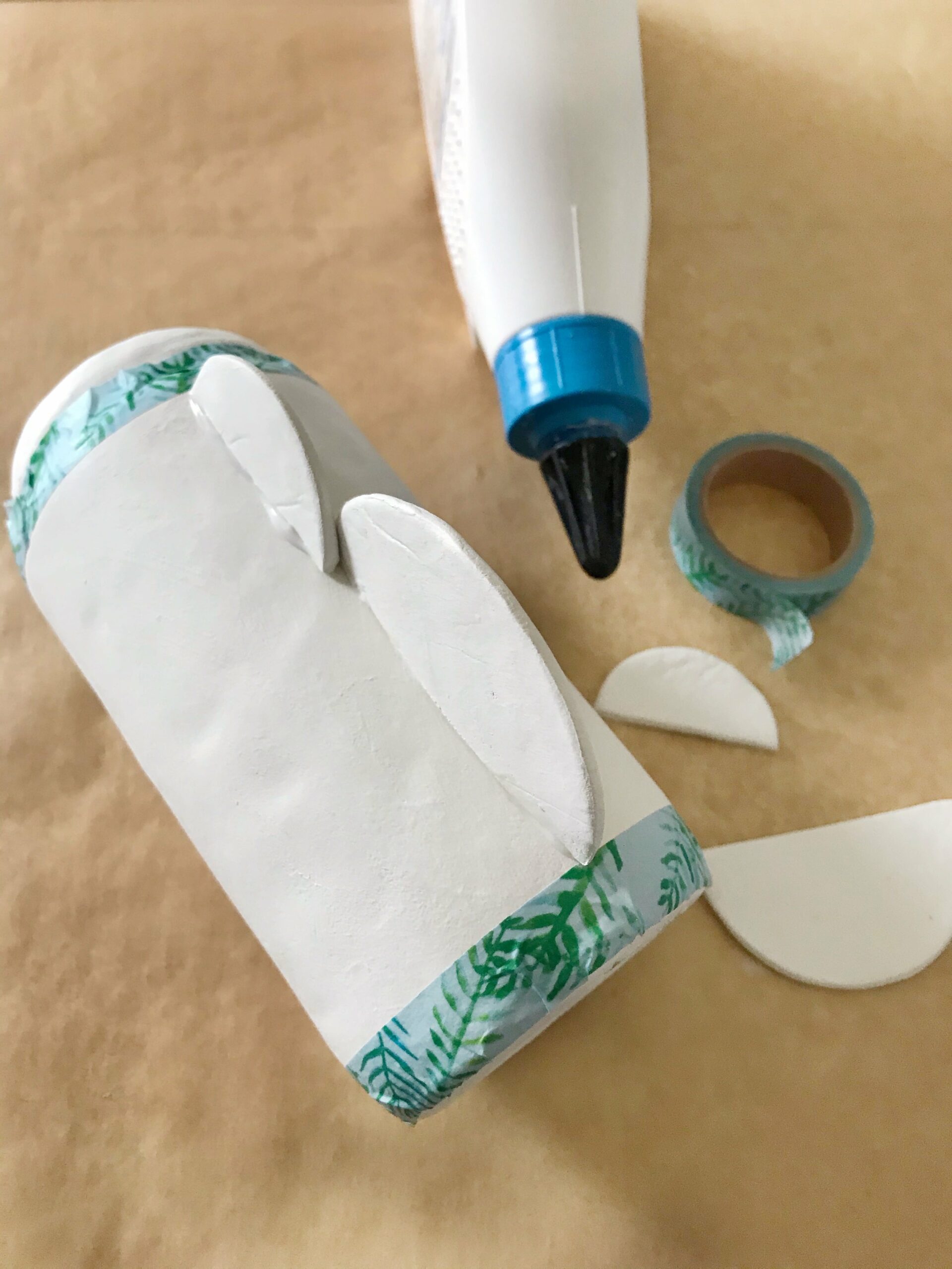- Zum Schluss zieht ihr das Washi Tape ab und entfernt ggf. ein paar ausgetretene Leimreste vorsichtig mit dem Findernagel von der Modelliermasse.