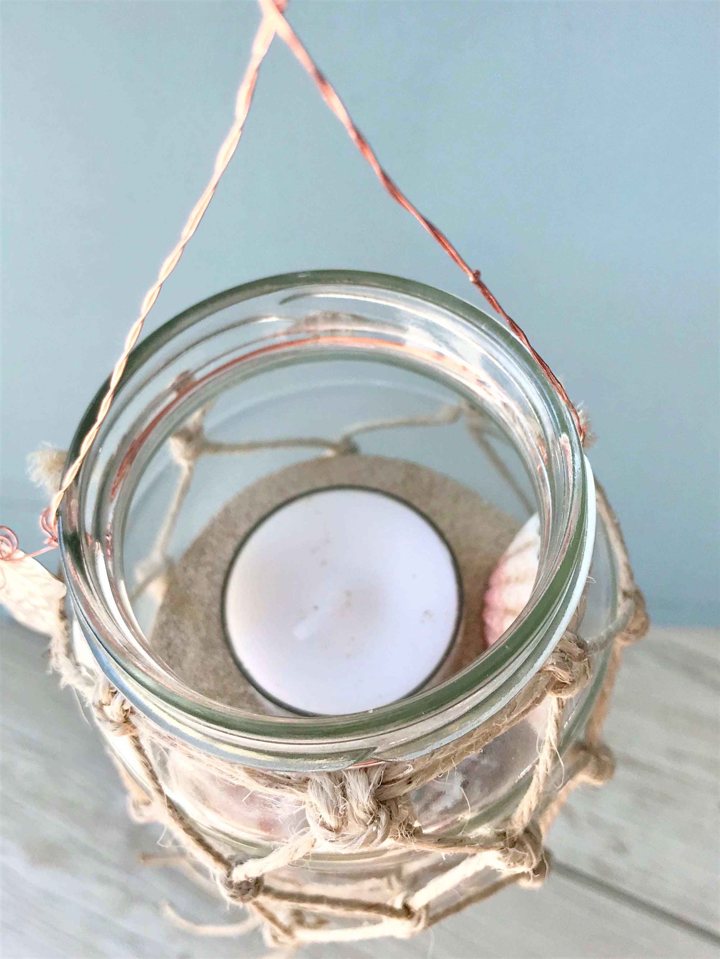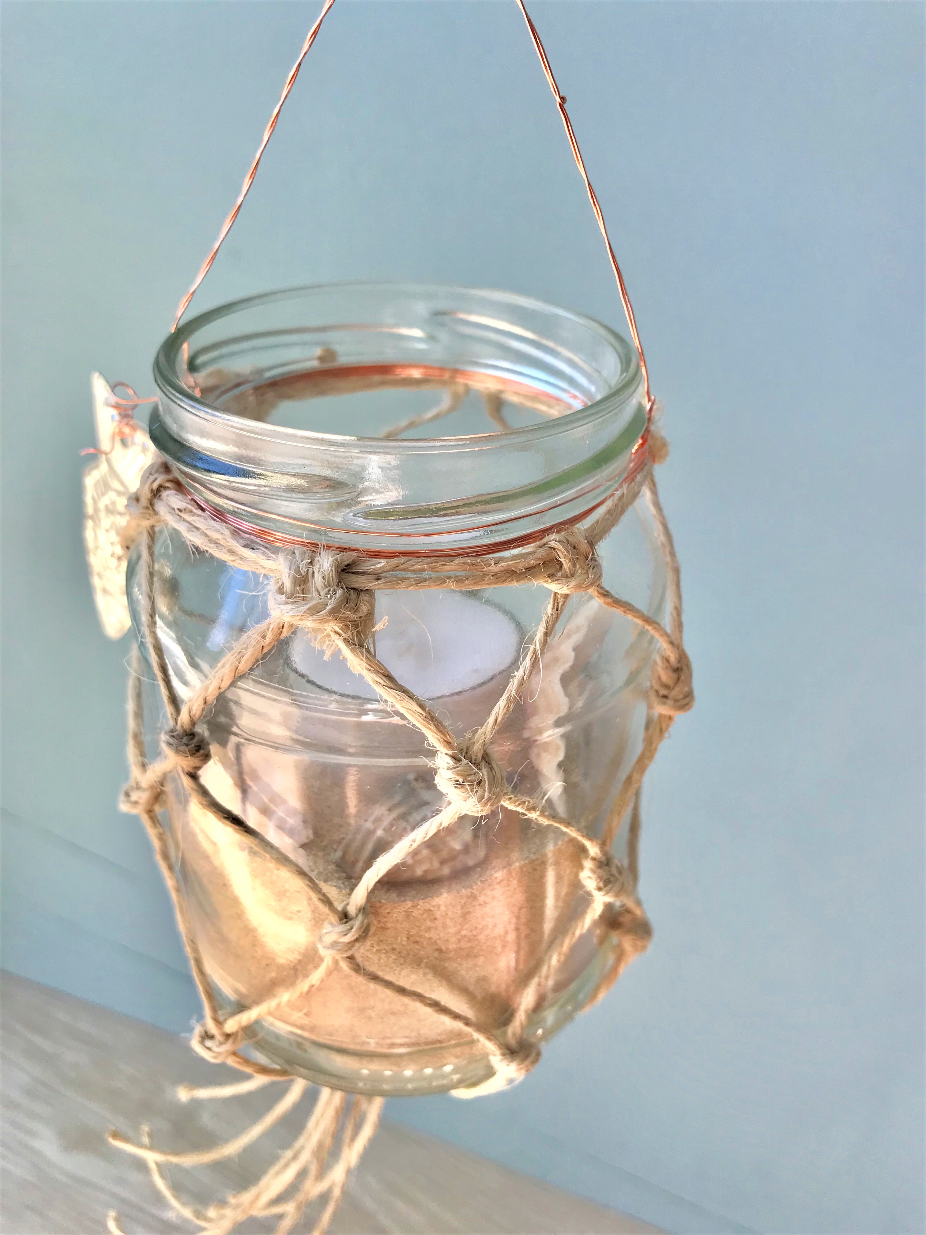Von wegen Makramee ist altbacken. So bastelt ihr euch ein trendiges Windlicht mit einfachen Mitteln und einer Makramee-Technik die kinderleicht ist.