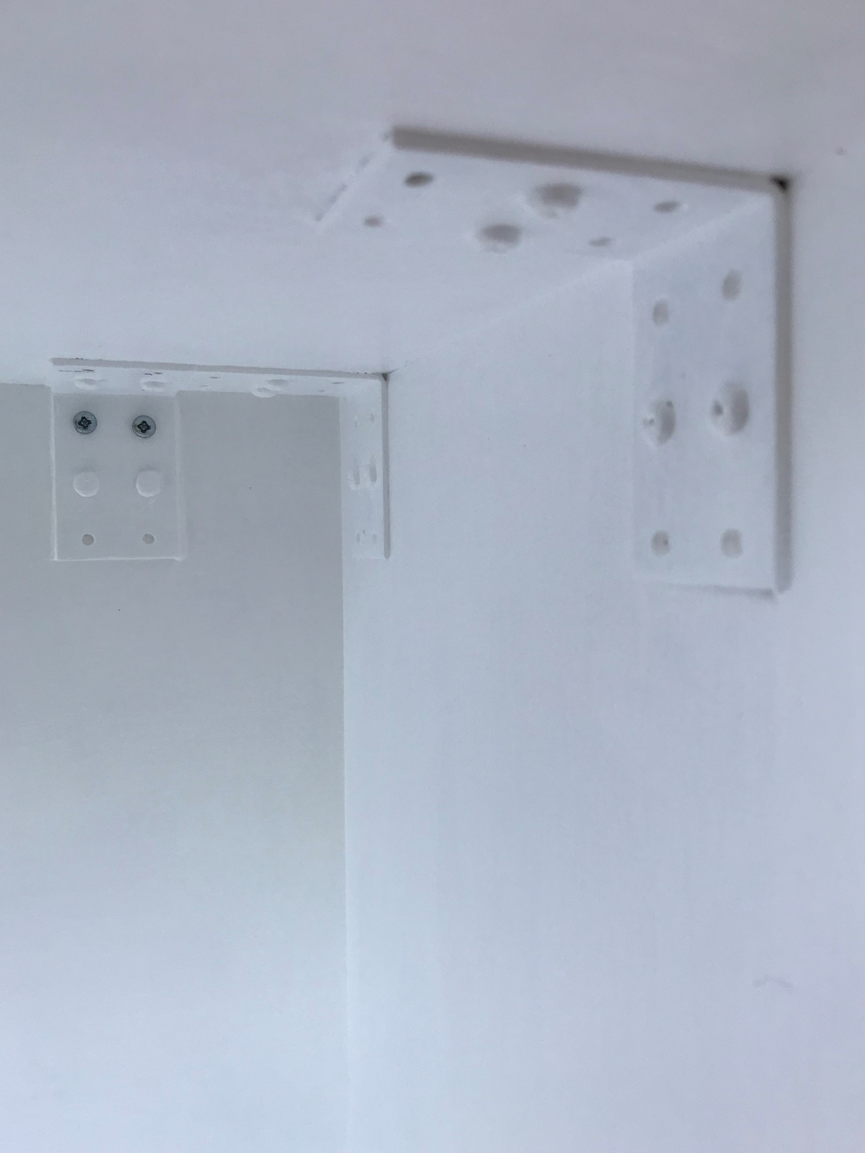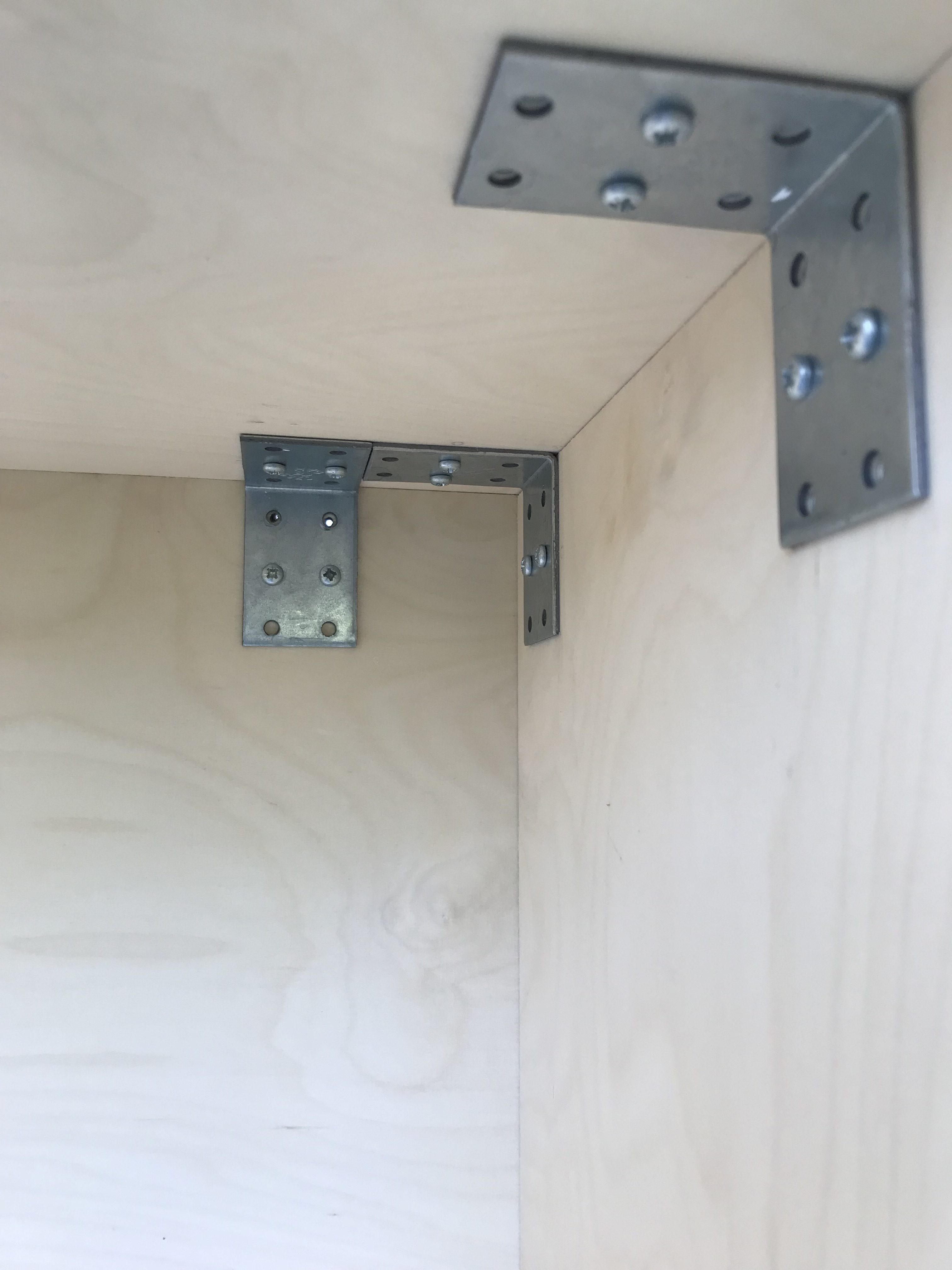 - Wenn der Korpus des Pflanzregals steht, schraubt ihr alle Lochplattenwinkel und die Kanthölzer für den Zwischenboden an.