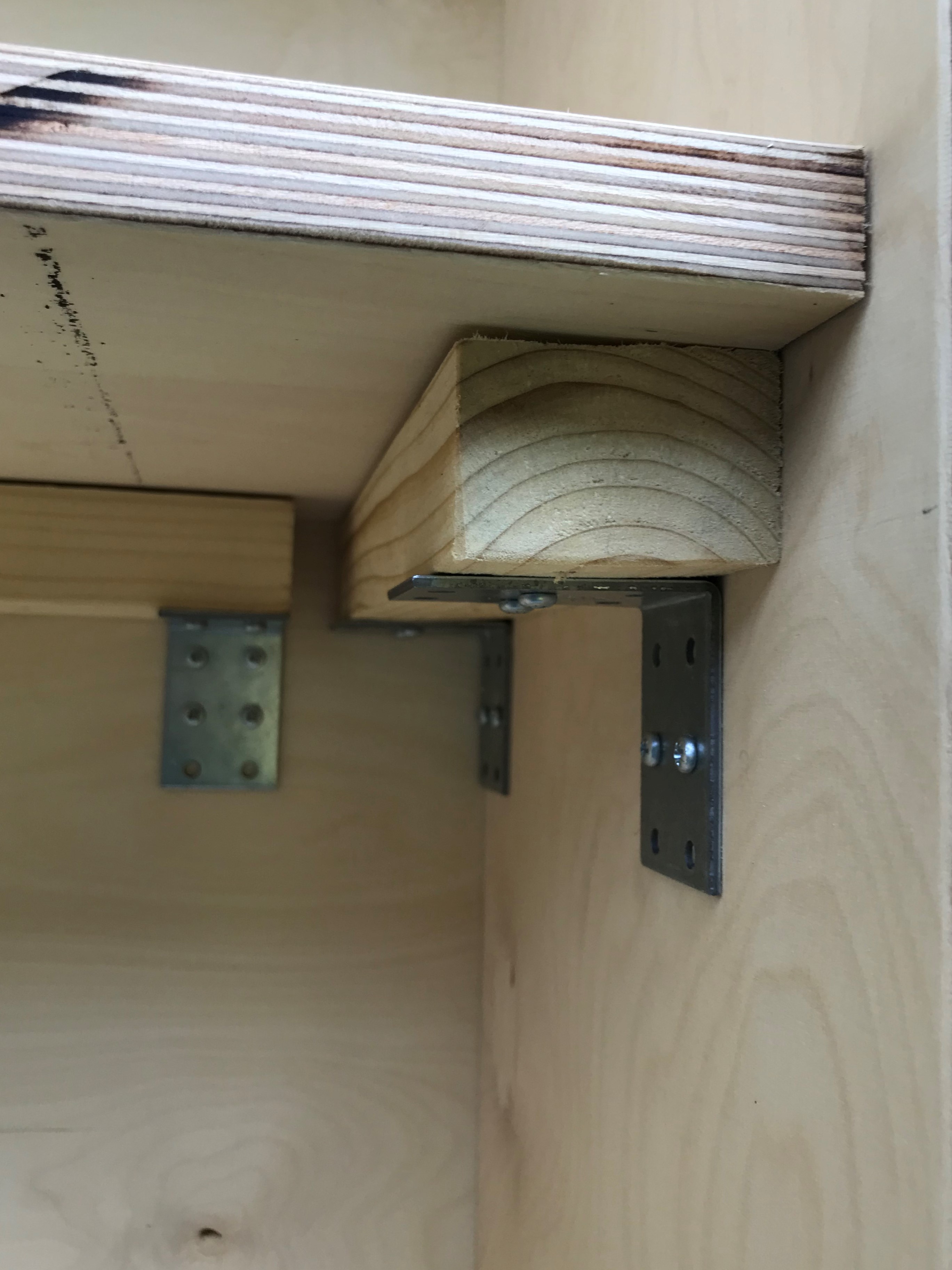 - Das Zwischenbrett habe ich festgeschraubt, ihr könntet es aber auch nur lose auf die Kanthölzer legen.