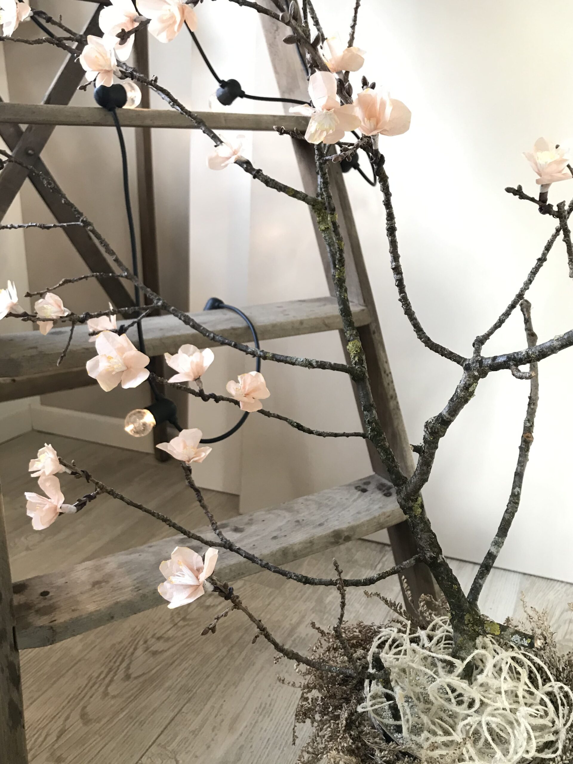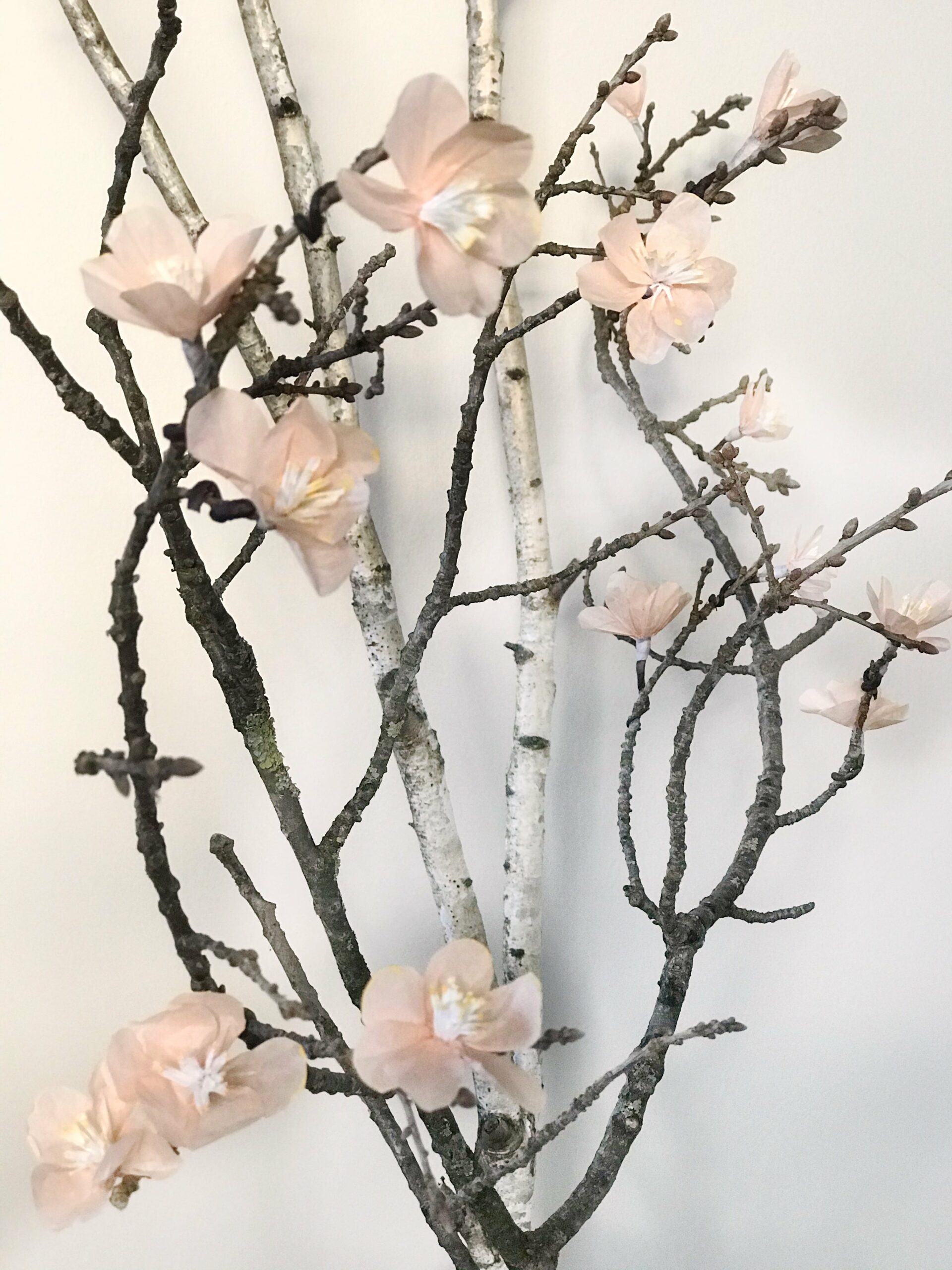 13. Wenn die Blüte getrocknet ist, könnt ihr sie an einen kahlen Ast wickeln.DIY: Papierblume basteln im Frühling. Seidenpapier Blume selber machen. #chalet8 #Papierblume #Papierblüten #Seidenpapierblume #Frühling #Frühlingsdeko #Frühlingsdiy