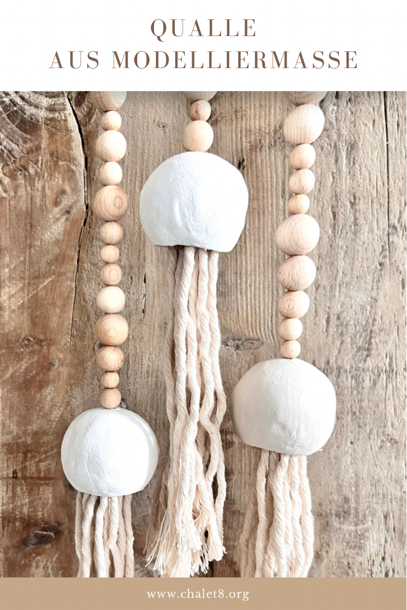 DIY Qualle aus Modelliermasse und Makrameegarn. Schöne maritime Deko aus lufttrocknendem Ton. #Chalet8 #Qualle #Maritimedeko #Modelliermasse #lufttrocknendertonDIY Qualle aus Modelliermasse basteln mit Tentakeln aus Makrameegarn. Schöne maritime Sommer Deko für kleines Geld.