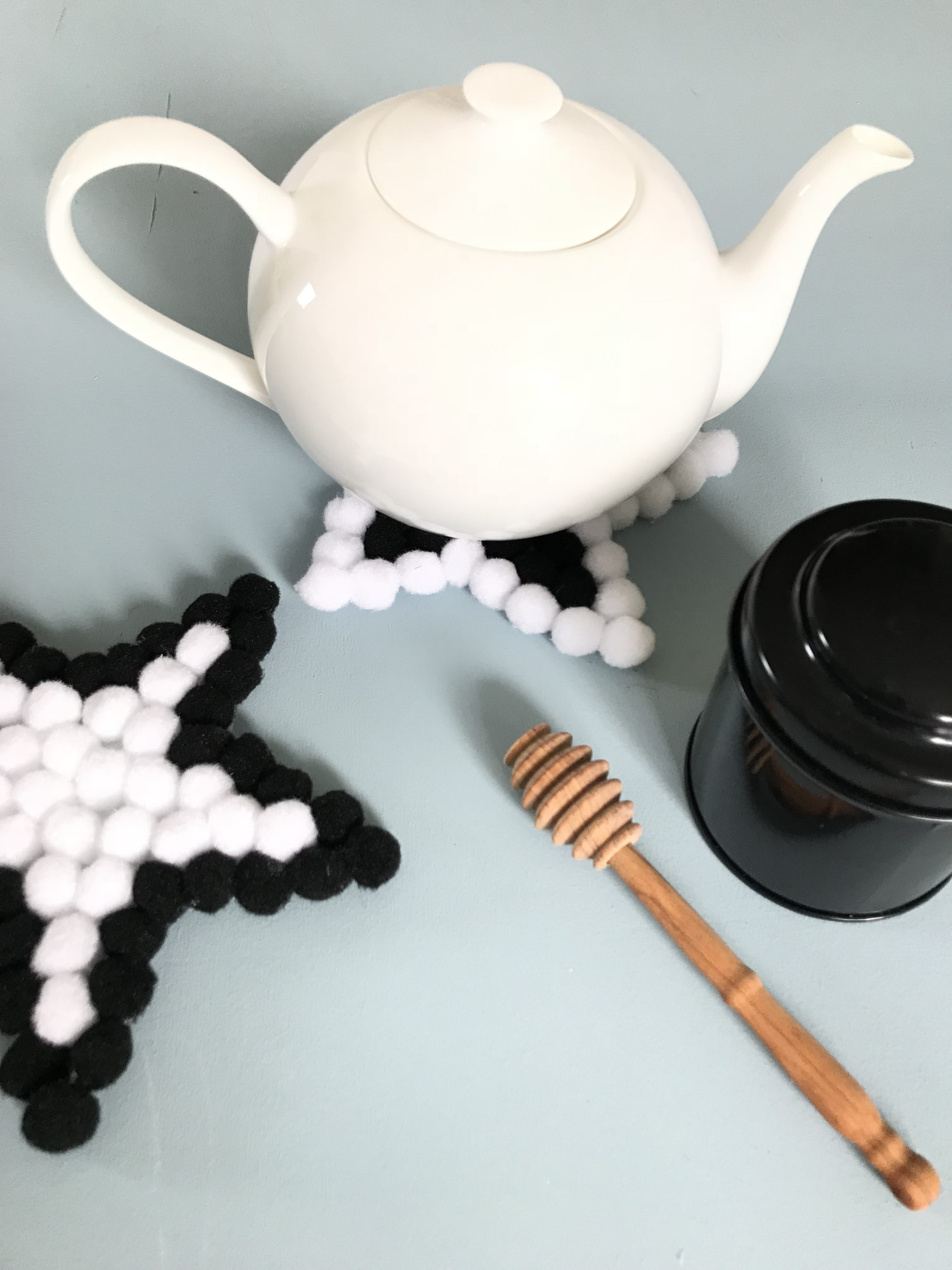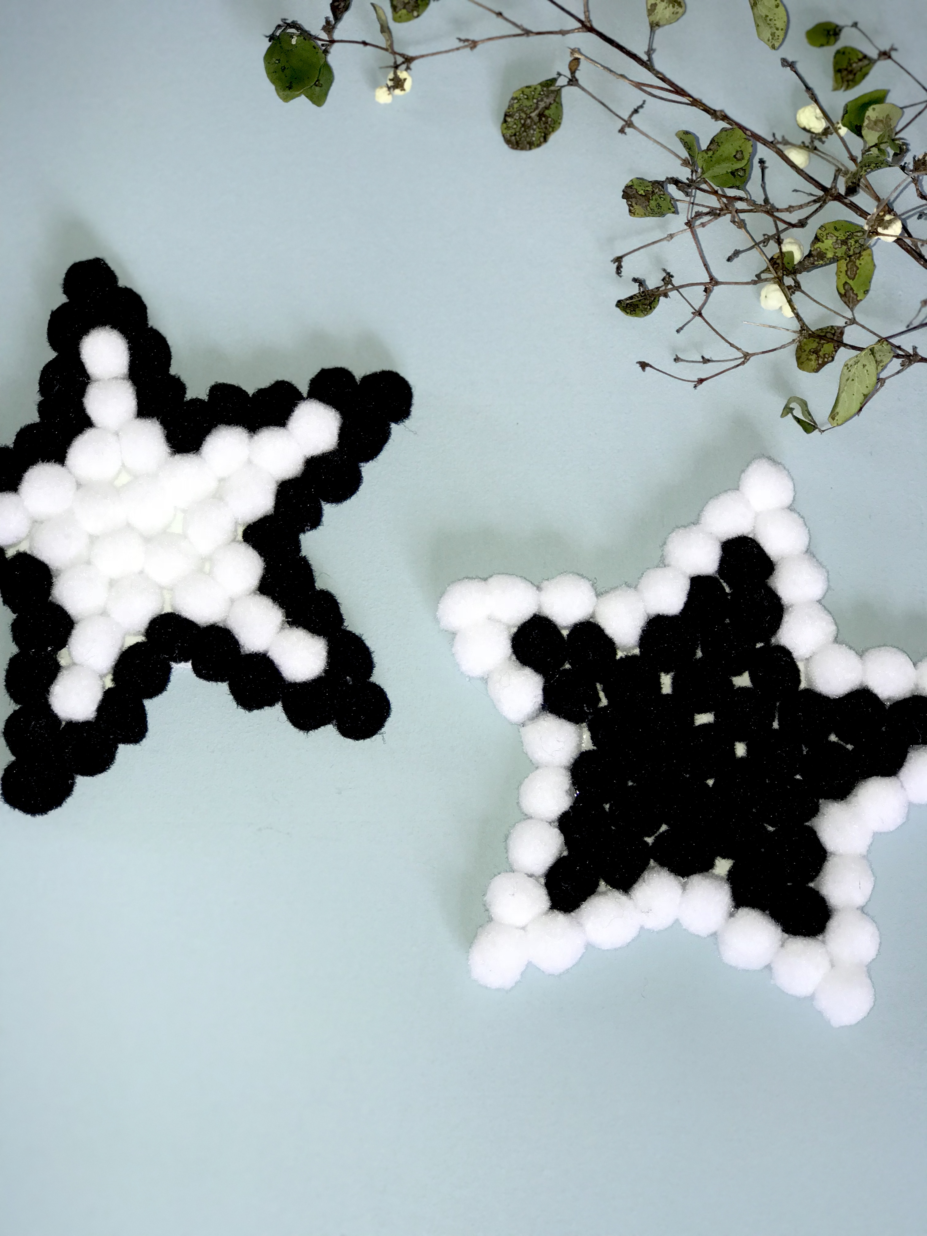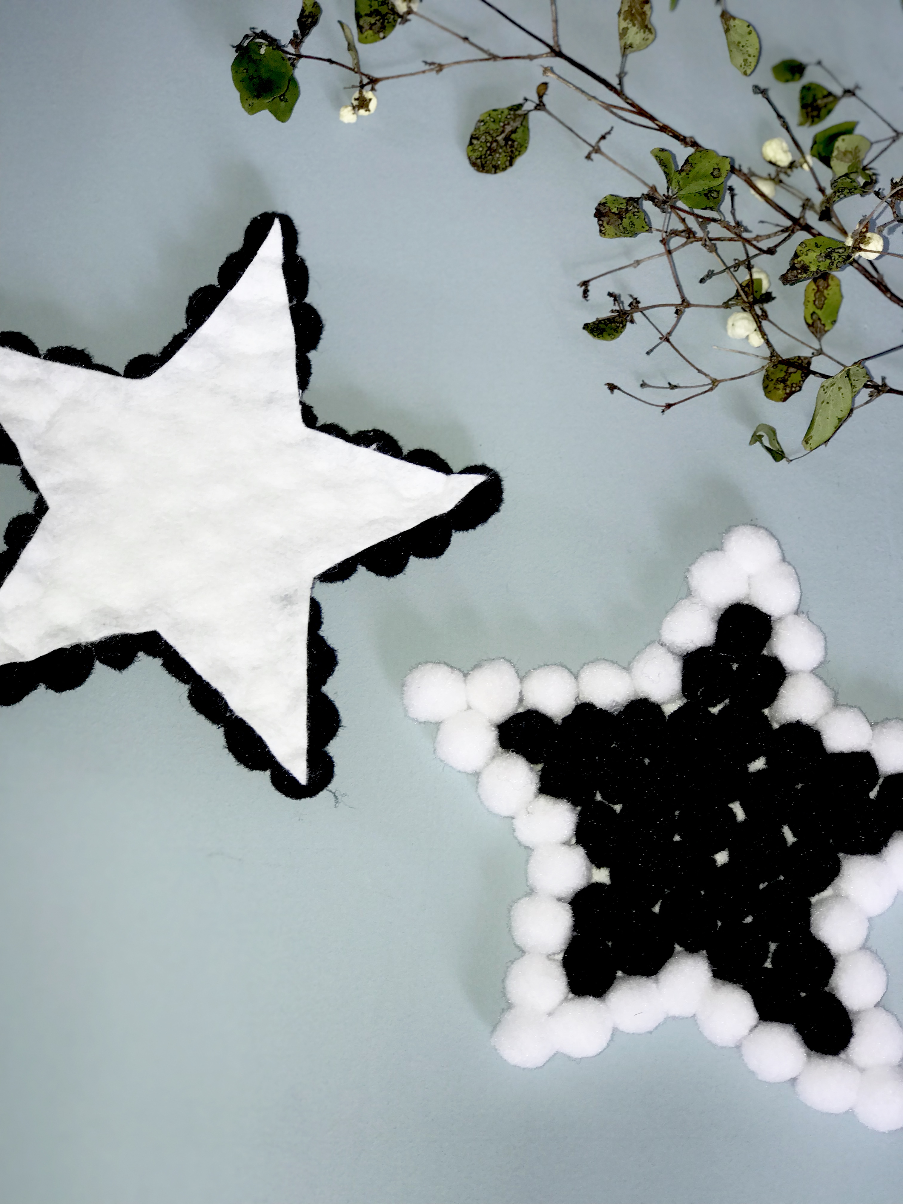 DIY: Filzbommelsterne basteln. Geeignet als Deko oder Untersetzer. #Chalet8, #FilzbommelsterneAlle Sterntaler unter euch werden diese Filzbommelsterne in schwarz weiß lieben. Außerdem haben sie eine praktische Funktion als Untersetzer.