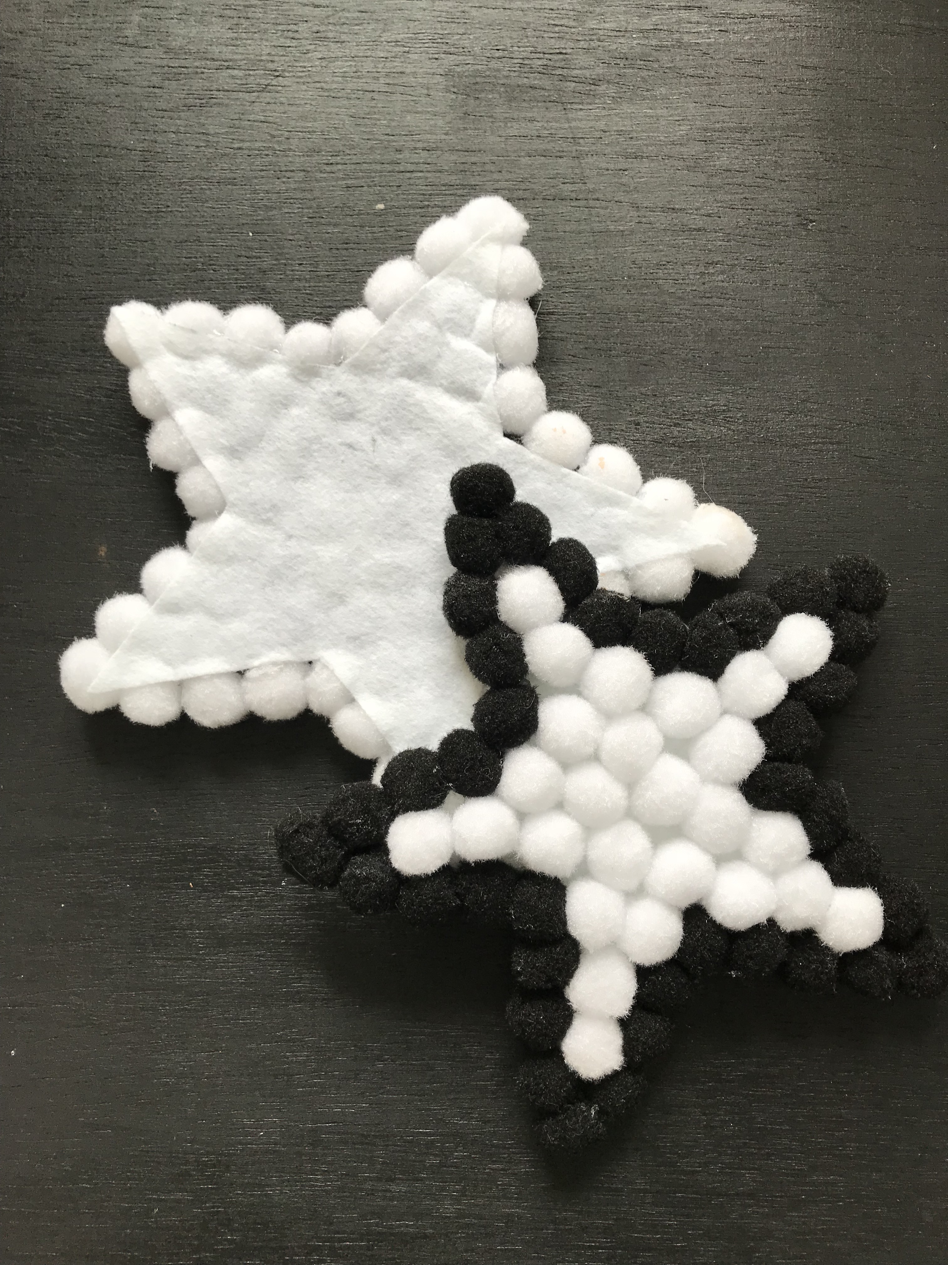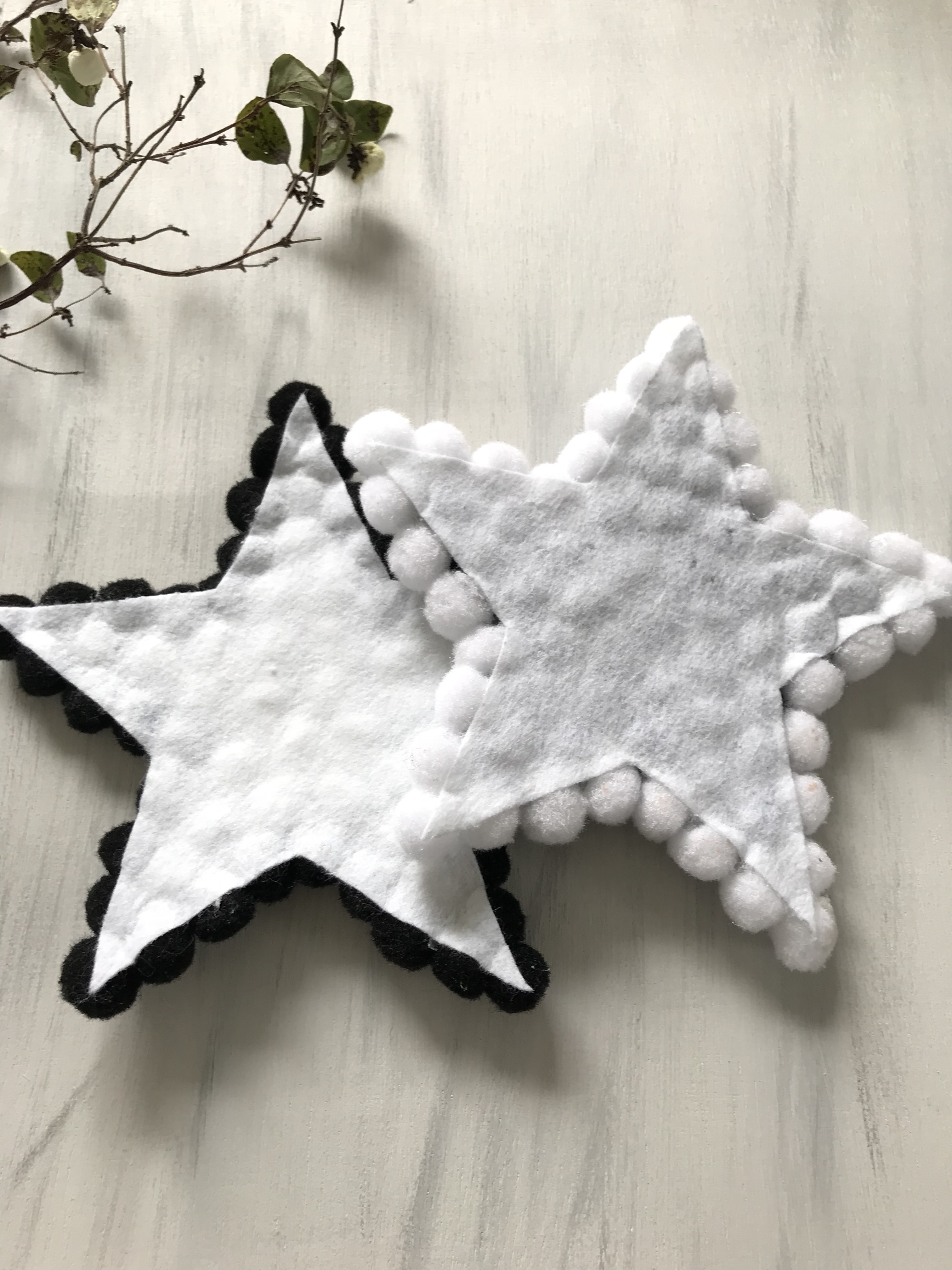 Für alle großen und kleinen Sterntaler da draußen gibt es heute flauschige Filzbommelsterne in schwarz-weiß. Sie sind dekorativ, können aber auch prima als Untersetzer verwendet werden.
