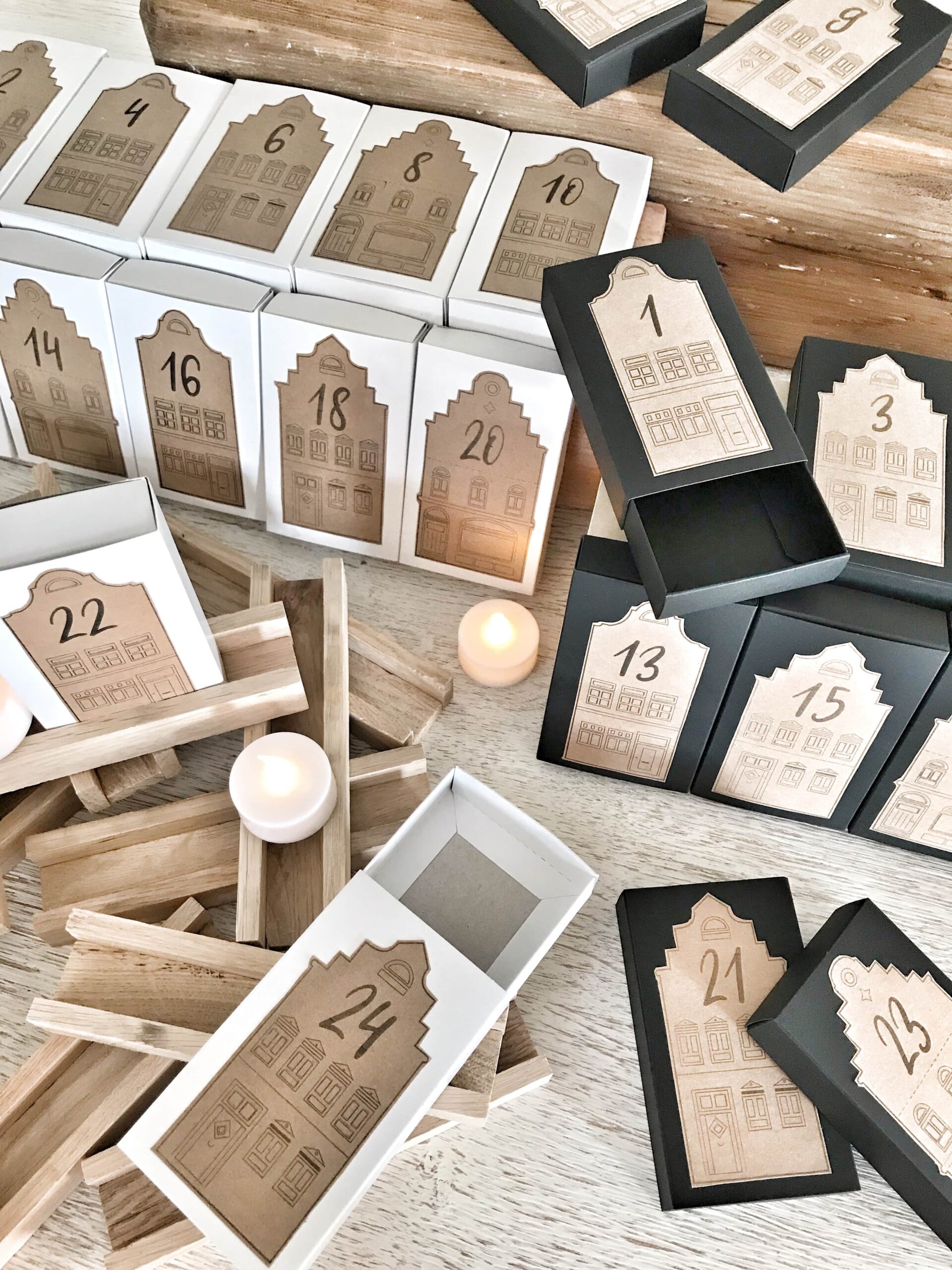 Weihnachten kommt ja immer ganz überraschend. Zumindest für Erwachsene. Für Kinder zieht sich die Wartezeit immer ewig hin und um diese zu versüßen gibt es die Adventskalender. Den Streichholzschachtel Adventskalender kann man individuell bekleben und somit auch an die Winterdeko zuhause anpassen. Es muss doch wirklich nicht der kitschig bunte Schokokalender vom Supermarkt sein. Dieser Streichholzschachtel Adventskalender ist auch für Erwachsene (Kinder), Geschwister oder Paare geeignet. Er kann mit kleinem Naschwerk, kleinen Geschenken oder Gutscheinen gefüllt werden. Schön ist auch, dass er wieder neu befüllt werden kann und somit mehrere Jahre die Adventszeit verschönert. Außerdem ist er, wie hier dargestellt, eine wunderschone Winterdeko mit den Häusermotiven.
