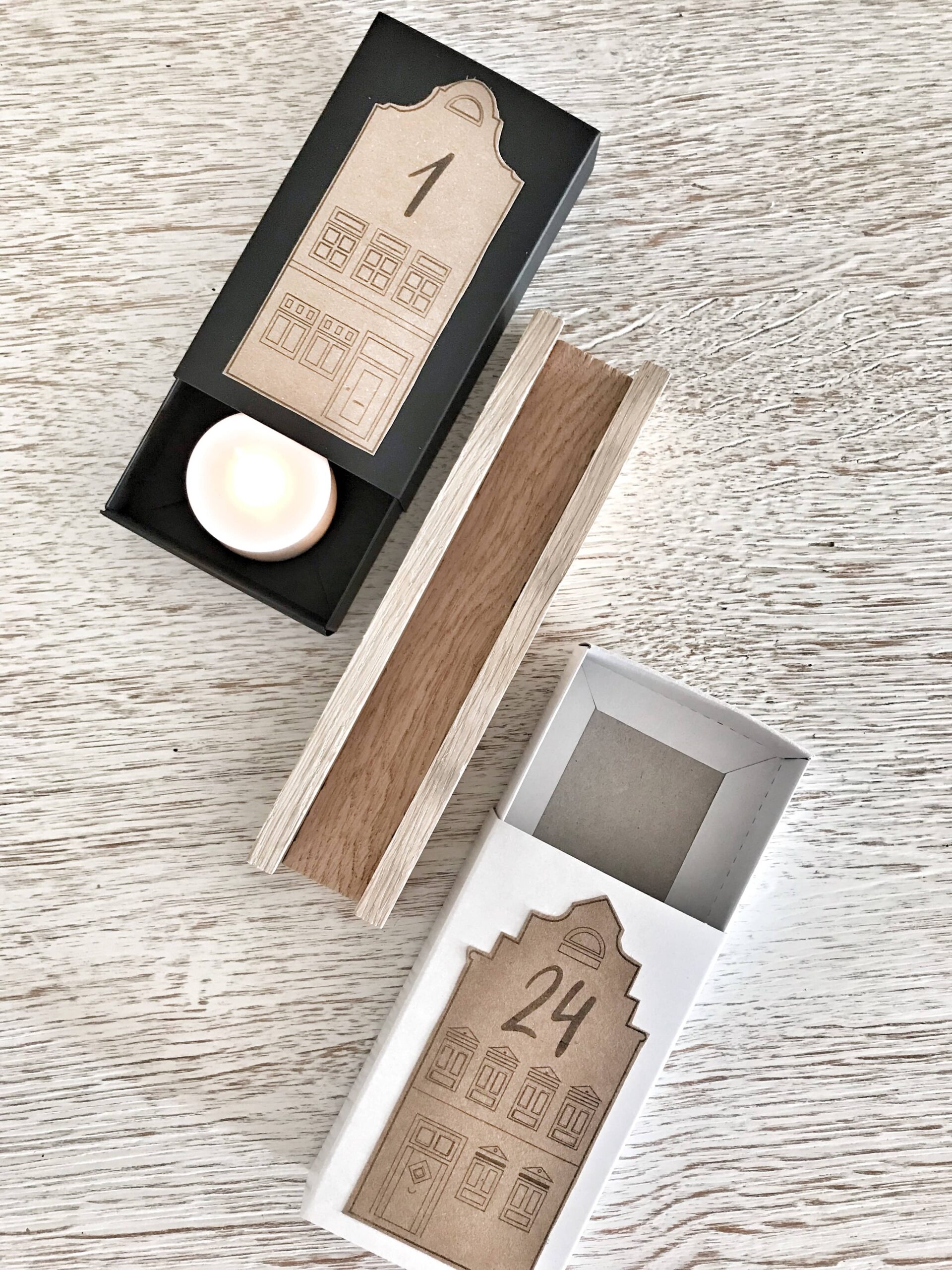 Streichholzschachtel Adventskalender: Mit großen Streichholzschachteln und Papier einen schönen Adventskalender und Winterdeko basteln.