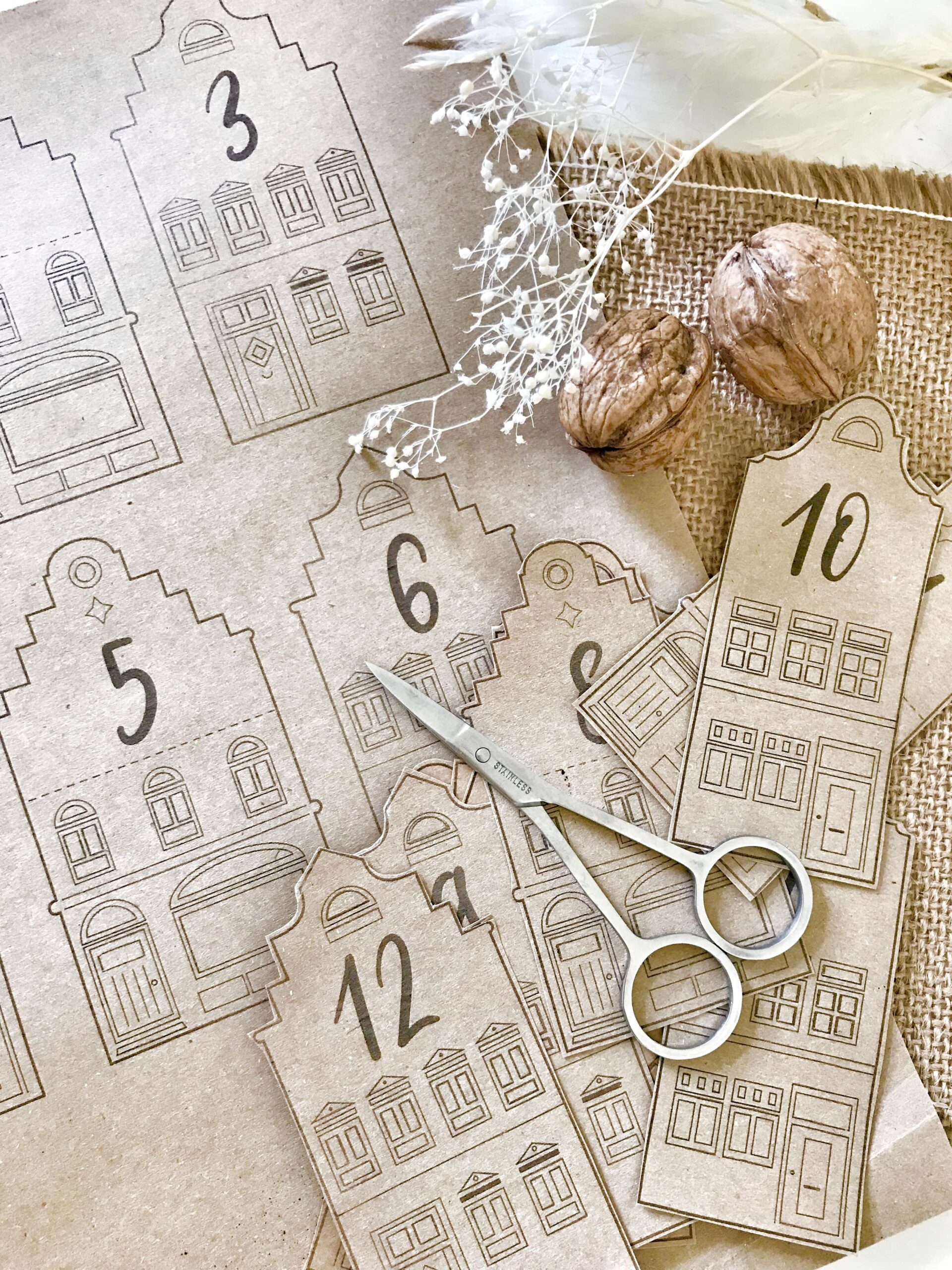 - Die Sticker mit den Häusern sind etwas klein für die großen Streichholzschachteln. Ihr könnt die Motive aber einfach in den Kopierer legen, um 150% vergrößern und direkt auf braunem Kraftpapier ausdrucken.
