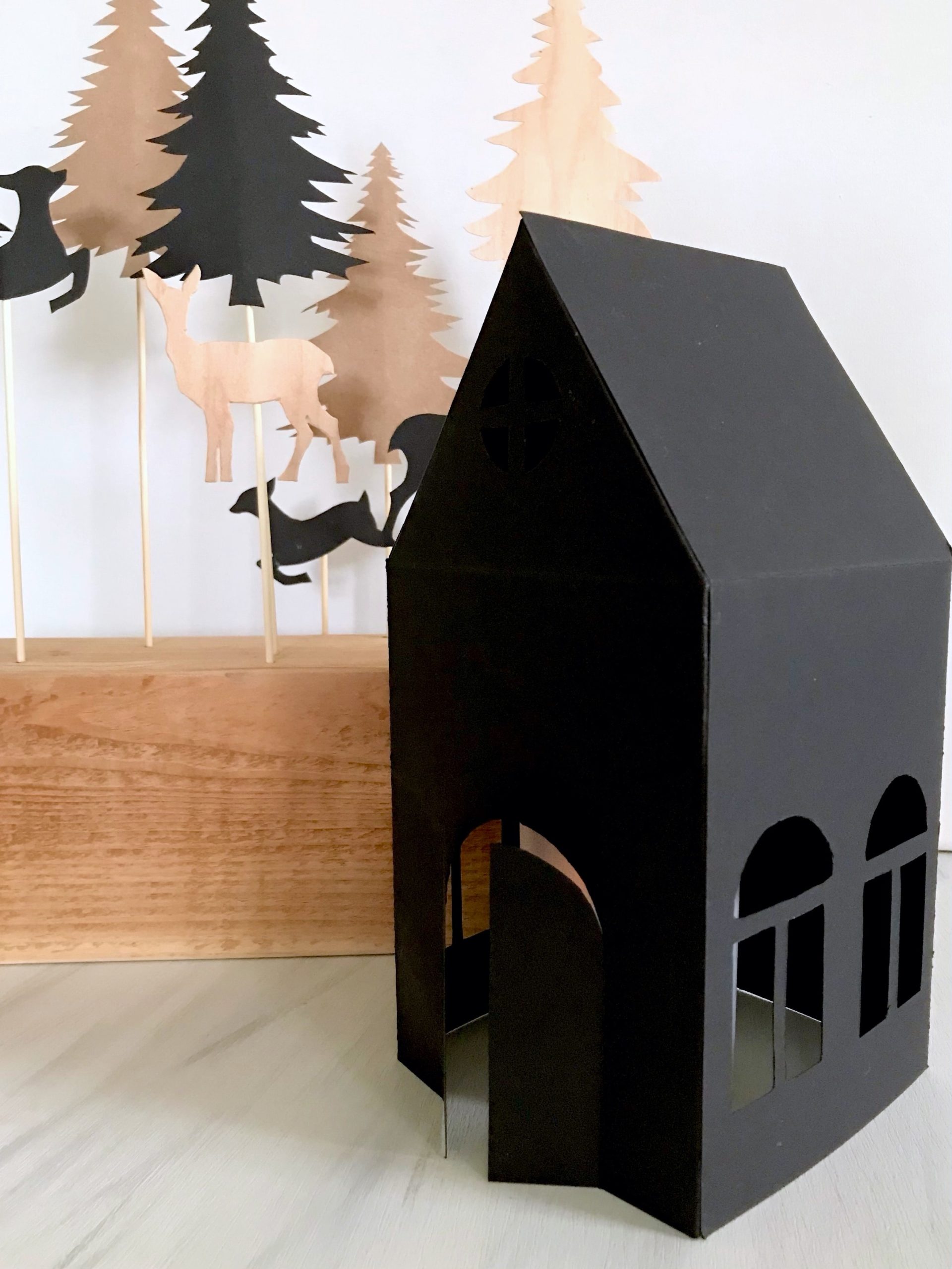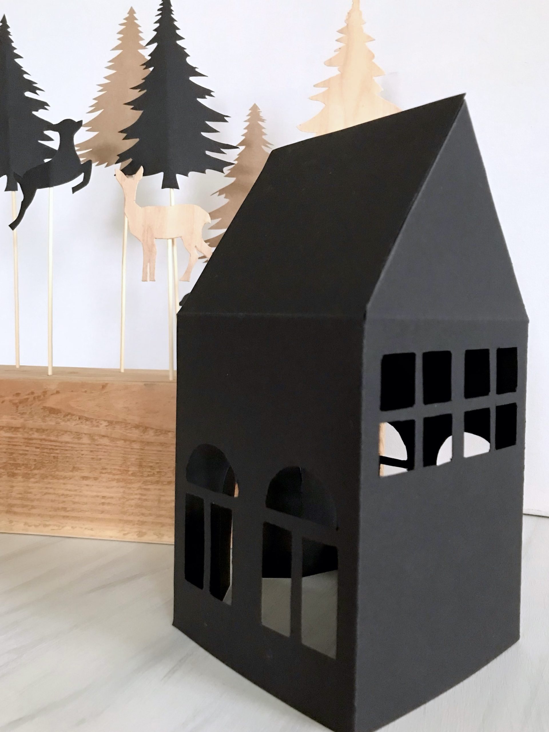 Eine lebendige Winterlandschaft basteln aus Papier und Holz – mit gratis Vorlage – ohne Plotter, sondern noch old-school mit der Schere.