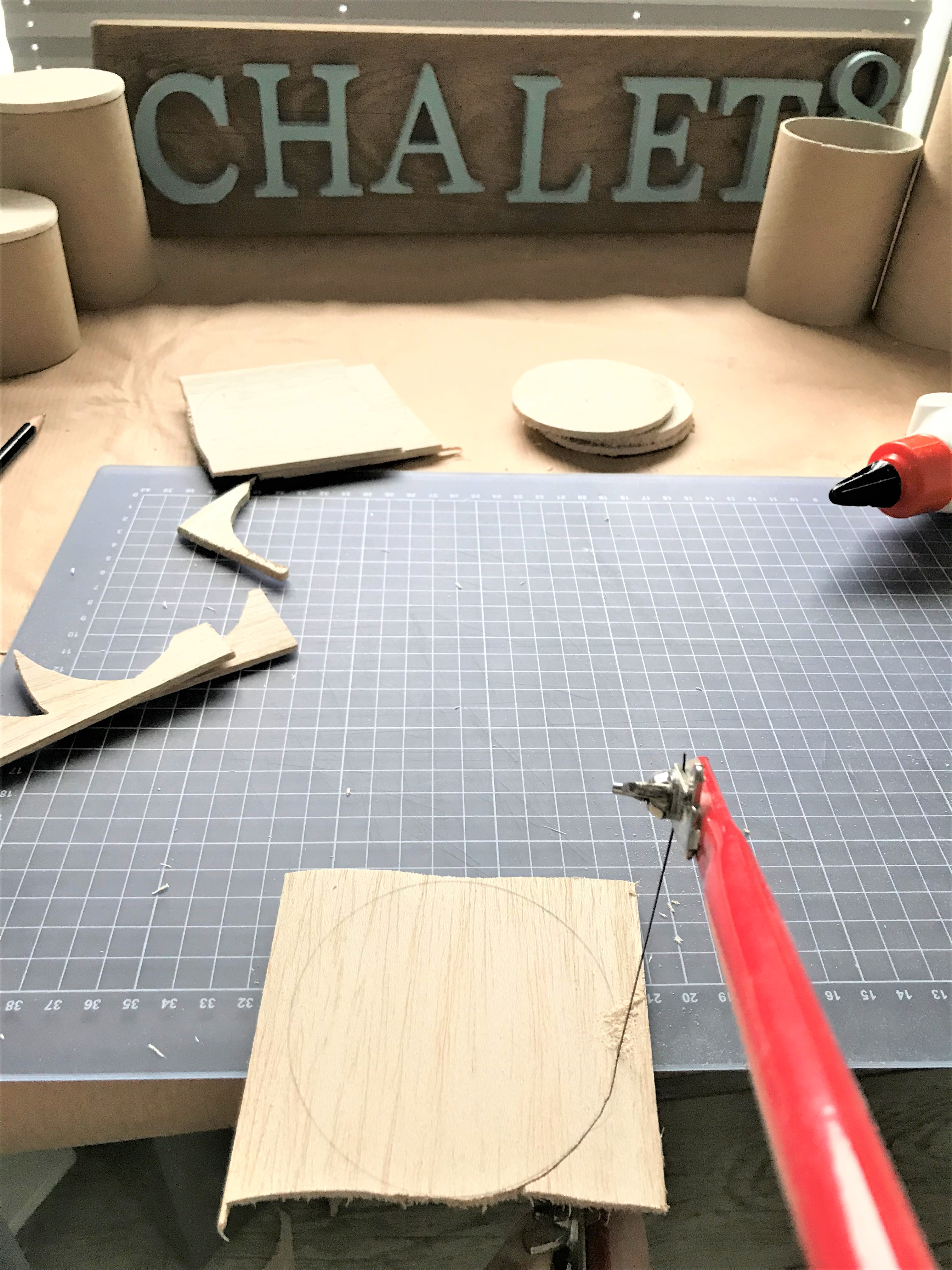• Ein Teilstück der Röhre auf das Balsaholz stellen und den Außenumfang mit dem Bleistift nachzeichnen -> großer Kreis.